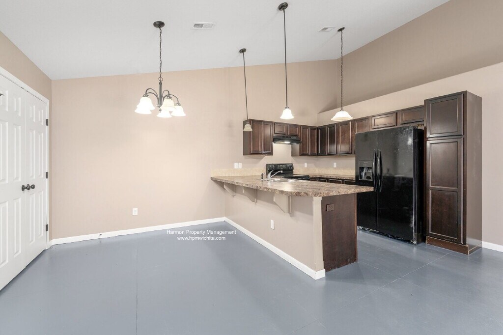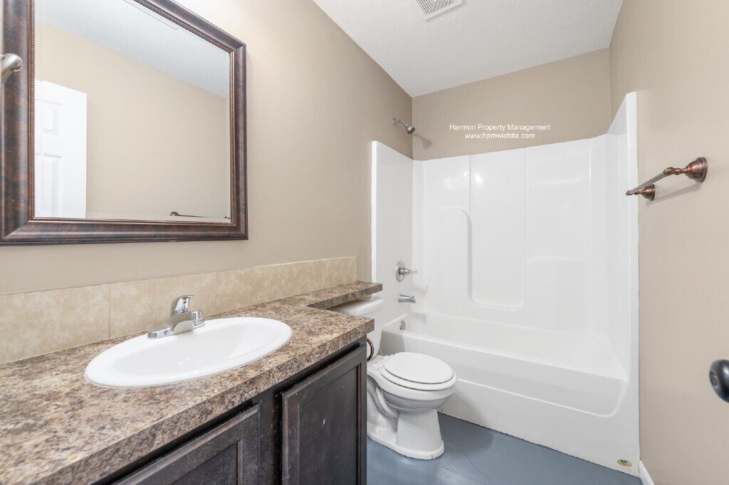 LIMITED TIME OFFER: ONE MONTH FREE RENT*! Visit or search for Harmon Property Management Wichita on the internet to schedule showings and submit applications. Our leasing process is 100% online. Pictures are of a similar unit on the same street. The Curtis Court duplexes are recently built, three-bedroom, two-bathroom, ground-floor-only duplex units located near 13th & Zoo Blvd, available for rent for $1,150 per month with a $1,100 security deposit. The security deposit is due at lease signing, and the rent is due at move-in. A one-year minimum lease is required. The minimum monthly base gross household income requirement for this property, which is three times the monthly rent, is $3,450. The units have a large living room and kitchen area with a vaulted ceiling. The living room features sliding patio doors that lead to a fenced patio area. The kitchen has a breakfast bar and dining area with a stove, dishwasher, and fridge provided by the property owner. The hall bathroom and three bedrooms are featured, including a main bedroom with a walk-in closet and a full en-suite bathroom. Washer and dryer hookups are available in the unit. No pets allowed No smoking is allowed on the property The units are not Section 8 approved $45 application fee per person over 18, including co-signers if necessary The tenant is responsible for all utilities and trash service. This property is located within a Homeowners Association (HOA), and tenants are required to abide by all HOA rules and regulations. The HOA provides lawn care, paid for by the property owner’s HOA dues. *A free month of rent is applied after three full months are paid on time. Benefits of Choosing a Property Managed by Harmon Property Management: Professional Property Management Email and Text First Communication - Focused on Quick Response During Normal Business Hours Online Application Process Online Leases with Electronic Signatures Online Rent Payment - 100% Safe, Secure, and Encrypted - Available 24/7/365 Online Maintenance Request Submission 24-Hour Emergency Maintenance Hotline Online Tenant PortalStove