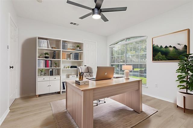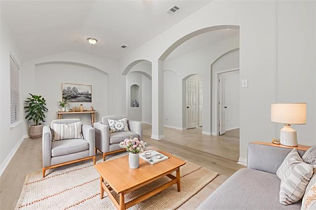 Lease Opportunity in Frisco, TX! $30K REMODEL! Located in the desirable Grayhawk and zoned for highly rated Frisco ISD schools, this beautifully updated 4 bedroom, 2 bath home offers exceptional comfort and style. Featuring two spacious living areas and two dining spaces, the layout is perfect for daily living and entertaining. The kitchen has granite countertops, abundant cabinetry, ample counter space, and a gas range. The primary suite includes plantation shutters, a walk-in closet, and a luxurious bathroom remodel with modern finishes, dual vanities, freestanding tub, and a separate shower. Both bathrooms have been completely remodeled. Fourth bedroom can easily serve as a private office or study. Freshly updated with beautiful white oak LVP flooring, paint, and baseboards (to be completed this weekend), plus a newer AC system (only 3 years old) and a brand new 6 foot privacy fence that will be ready before move in. The spacious backyard offers room for a patio set and outdoor enjoyment. Enjoy community amenities including a pool that is walking distance, playground, and bike trails. Prime location! Close to shopping, dining, and entertainment.