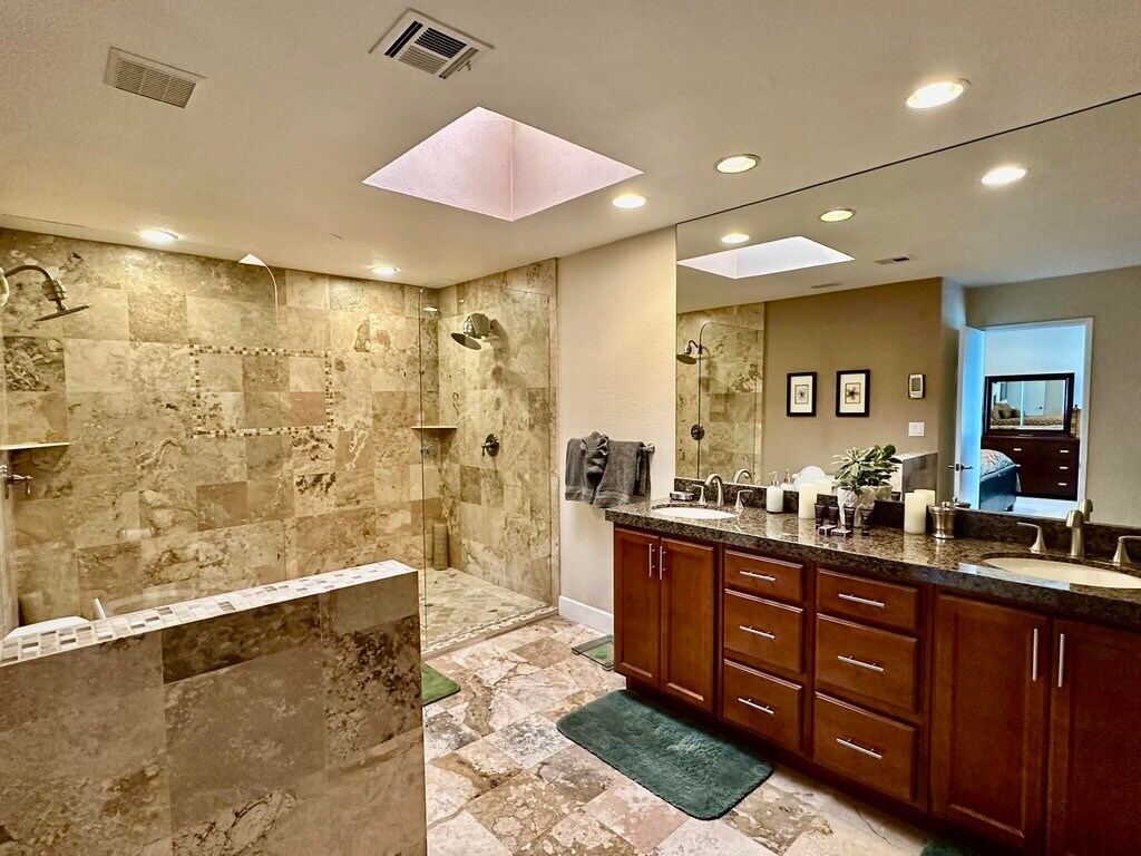 Experience luxury living in this spectacular 3000 Series condo featuring a spacious den. Completely remodeled and beautifully decorated with the finest finishes,it boasts a gourmet kitchen with granite countertops,new cabinetry,and a wet bar complete with an icemaker. The converted atrium enhances the open feel,while flat-screen TVs and surround sound elevate your entertainment experience. Enjoy the thoughtfully selected lighting and exquisite slate flooring throughout,including the patio and bathrooms. The extended slate patio,facing east on the fairway,is perfect for entertaining,complete with a gas barbecue. This condo is truly an entertainer's dream!