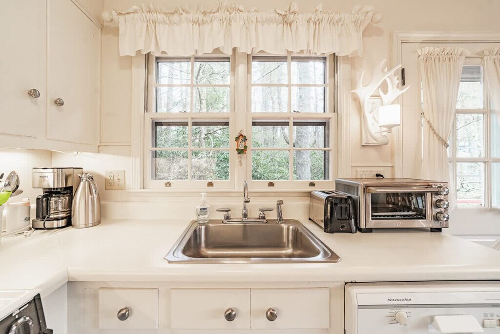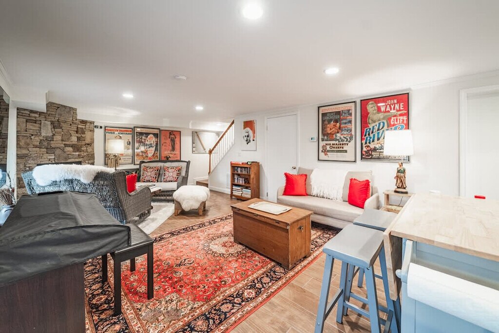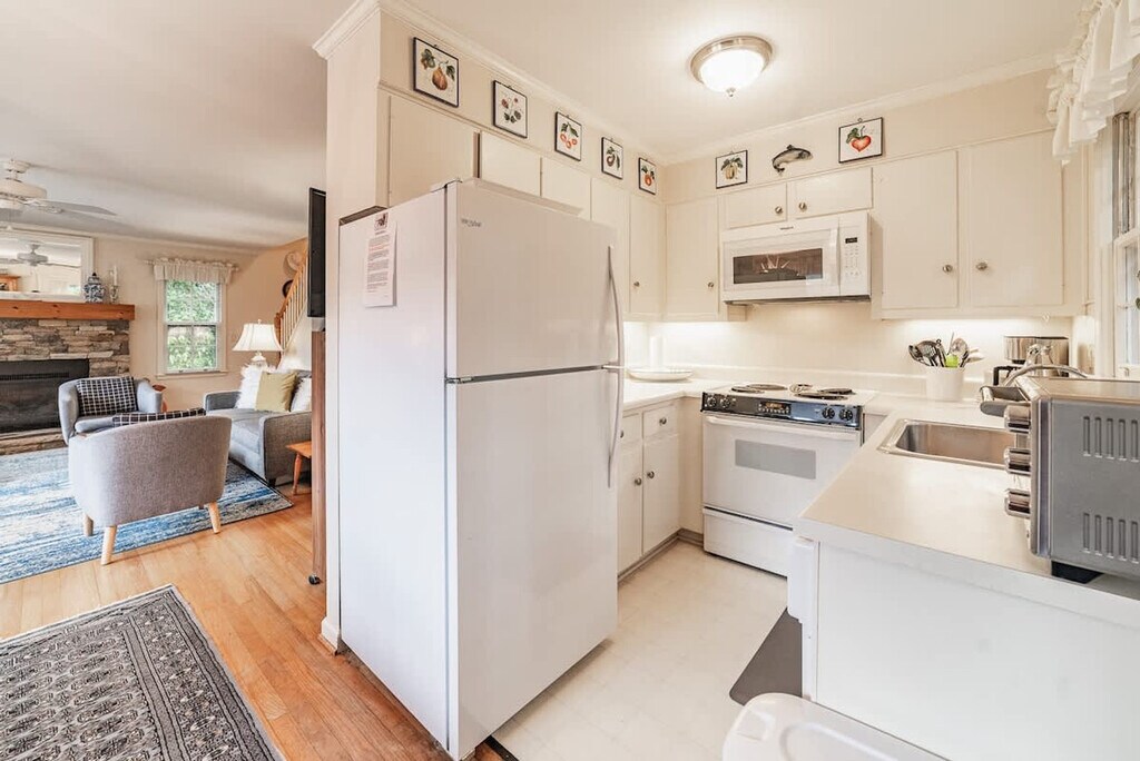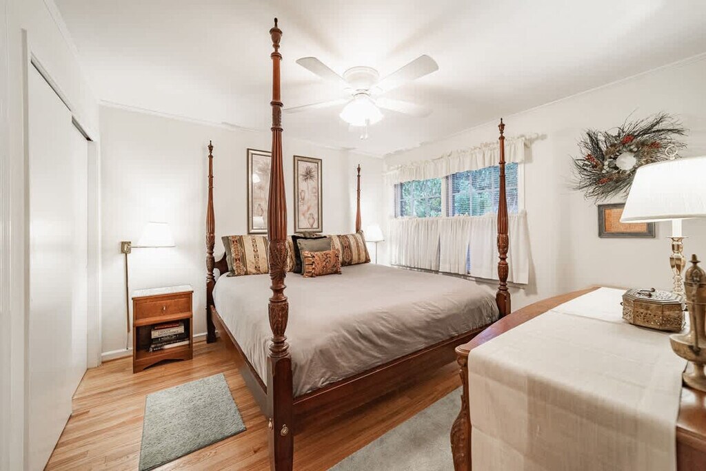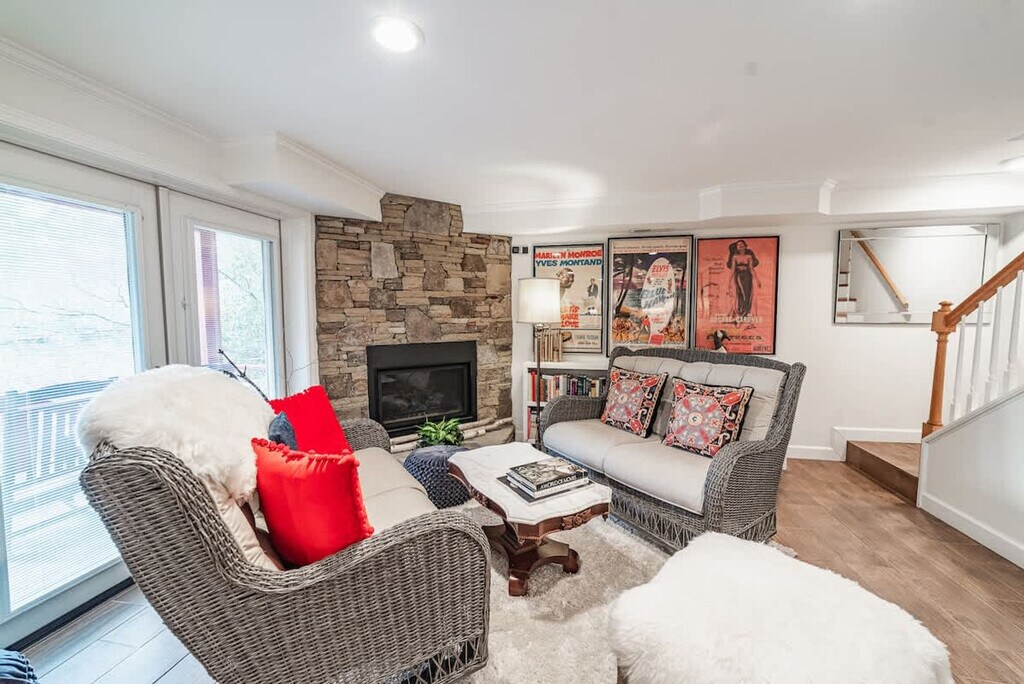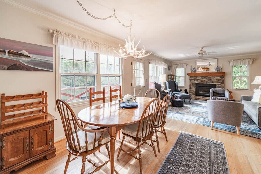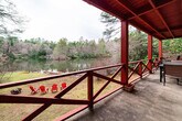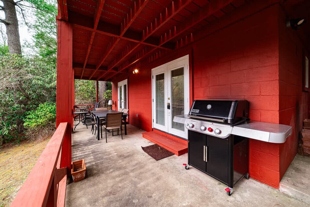 Feel at home in Maison Rouge, a mid-century lake house with a smart layout, real privacy, and a tranquil vibe. Tucked into the trees on Mirror Lake, this home features 4 bedrooms and 3 full baths. Reminiscent of a quaint Swiss chalet, Maison Rouge has been in the same family since it was built in 1965. Situated on a private lakefront wooded acre of lush Rhododendrons, Dogwoods, fragrant Carolina cherry laurels, azaleas, and pine trees, this waterfront home has enviable unobstructed views of Mirror Lake. The main floor galley kitchen is fully equipped with under-cabinet lighting, oven/range, dishwasher, microwave, coffee maker, toaster oven, glassware, a complete set for 12 of fine china, cutlery, bake-ware, pots, pans, a stock pot, and a few pieces of 100 year-old seasoned cast iron cookware. The living room opens to a large wrap-around deck and has a gas-fired stacked-stone fireplace, flat-screen TV, DVD/VHS player with 5-disk CD player and AM/FM. The home is wired for Internet, cable and Smart TV. The lower level has an open family room with entertainment kitchen, gas fireplace, flat-screen TV and full bath. A terrace with Weber gas grill and dining table (seats 6) is also on the lower level, along with a washer and dryer. There is a flat-bottom boat, and life jackets and paddles are located in the storage room. Fishing is catch and release. Maison Rouge is conveniently located within walking distance (a little less than 1 mile) or a 3-minute drive from downtown Highlands, the ideal destination for romance, girlfriend getaways, families and leisure groups. There is no smoking of any kind in the unit, and there will be an automatic $500 cleaning fee if there is any smoke smell inside of the unit. If you smoke, please do so off of the property, at least 15 feet away from any doors/windows. There is an automatic $100 late check-out charge if you're still in the property 20 minutes after check-out. If septic tank rules are not followed and result in a backup, the tenant will be held responsible for repairs. There is a 50lbs pet weight limit. [SI]