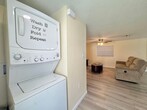 This cute and cozy furnished 1-bedroom, 1-bath apartment offers a comfortable and low-maintenance lifestyle. Inside, you’ll find vinyl plank flooring throughout and an open floor plan with a spacious living and dining room combo. The updated kitchen features plenty of cabinet space and a convenient breakfast bar. The large bedroom offers a generous walk-in closet, while the bathroom includes a beautiful tile walk-in shower. A stackable washer and dryer are conveniently included for your use. Enjoy relaxing outdoors on the covered front and rear porches — perfect for morning coffee or winding down in the evening. Move-in ready and full of charm, this apartment is ready for you to call home!