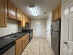 Very well maintained split plan 2 bedroom,2 bath townhome with vinyl and tile flooring throughout. Family room has vaulted ceiling with lots of natural light. Galley kitchen with all electric appliances. Laundry room is equipped with washer and dryer. Covered back patio with storage room. Landscaping is maintained by HOA. No pets!