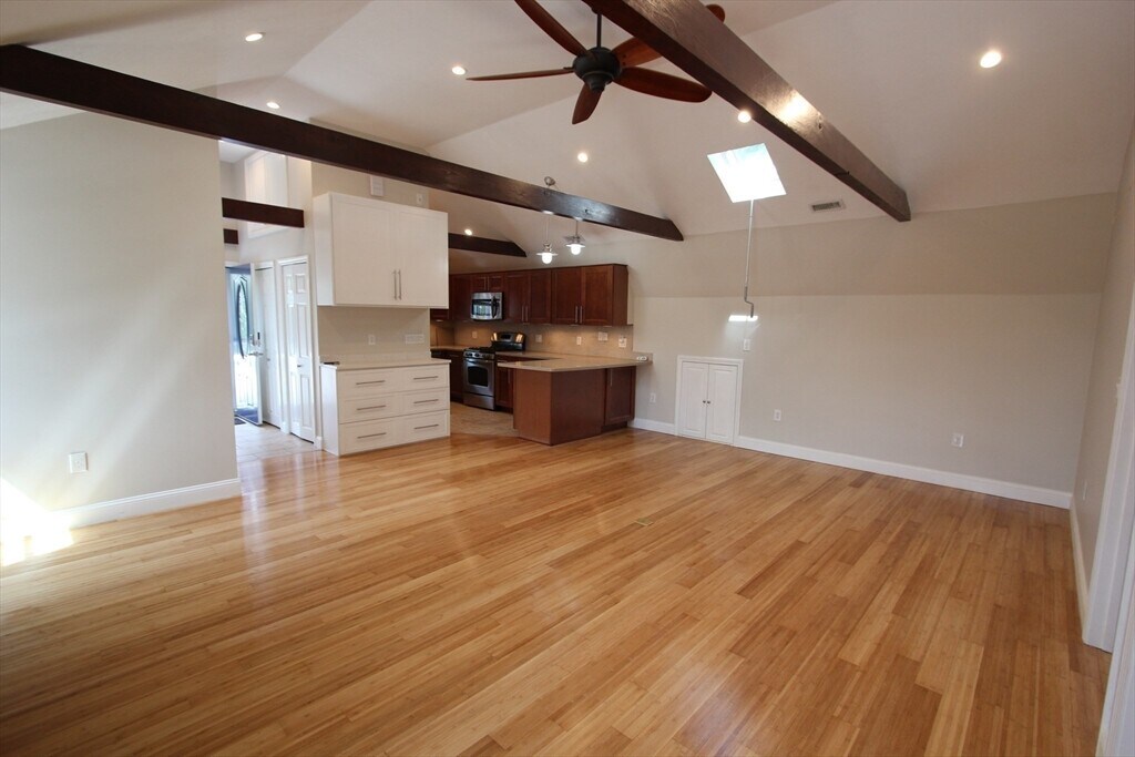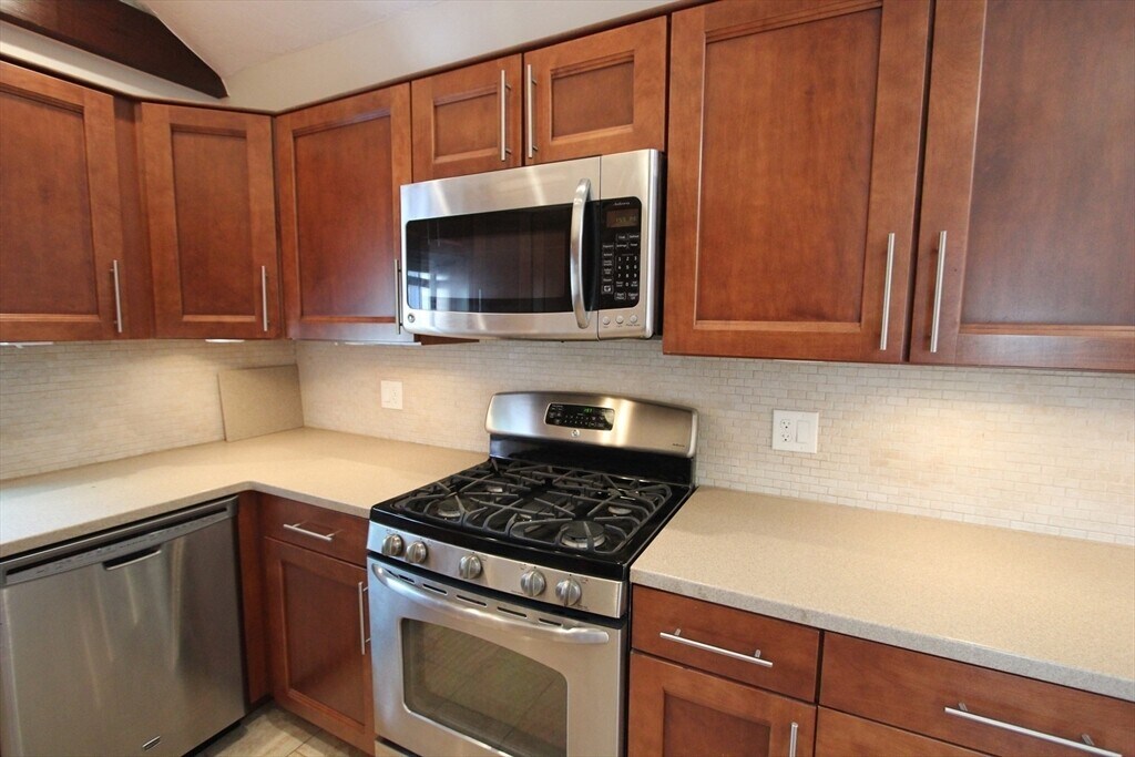 Recently refreshed 2 bedroom apartment - sits above the garage,has an outdoor upper deck to enjoy the warmth in the good weather,and an expansive backyard to use. It has 2 Bedrooms,1 Full Bath,laundry in bathroom,large kitchen and open floor plan. This apartment is in a multi-family,owner occupied home and is available immediately. Tenant pays for electricity,propane and cable/internet. Landlord pays for water,sewer,trash,snow removal and landscaping. Pets allowed,but landlord requires meeting pet before making a decision. Modern,fully applianced kitchen with newer appliances,granite counter tops and plenty of natural lighting. Living room has built-in bookcases and a fireplace. All rooms have plenty of closet space. Parking is off street and in front of the unit behind the fence. The yard is fenced and is great for entertaining and relaxing outside for all to enjoy. Daily showings available by appointment only. MLS# 73425448