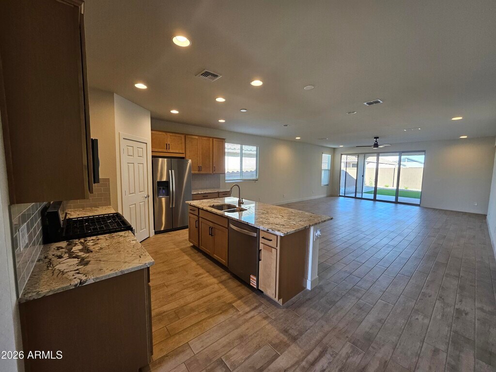 Welcome to this lovely newly built home in Apache Junction,AZ. This property boasts four spacious bedrooms,including a versatile den,and two full bathrooms. The kitchen is a chef's dream with its sleek granite countertops and a full suite of appliances. The home also features a generous 2.5 car garage,providing ample storage space. The exterior is just as impressive with its low-maintenance artificial grass. As part of a vibrant community,residents have access to a heated pool,perfect for year-round enjoyment. Plus,a children's playground is just a short walk away,offering a fun-filled outdoor space. This home is more than just a place to live; it's a lifestyle.