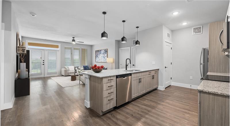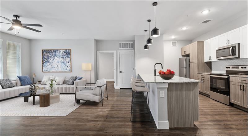 This contemporary apartment community offers an elevated living experience with spacious, thoughtfully designed interiors and top-tier amenities. Each apartment features open-concept layouts, large windows that flood the space with natural light, and modern kitchens equipped with sleek stainless steel appliances. The neutral finishes create a calm, inviting atmosphere that makes it easy to relax and unwind. Beyond the apartment, the community boasts a variety of amenities to enhance daily life. Enjoy access to a sparkling swimming pool, a fully equipped fitness center, and outdoor spaces perfect for social gatherings or quiet moments of solitude. Conveniently located near major highways, shopping centers, and entertainment options, residents can easily explore everything Austin has to offer. Whether youre working from home or spending time outdoors, this community combines comfort, convenience, and style to create a living experience tailored to your needs.