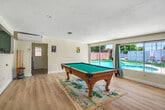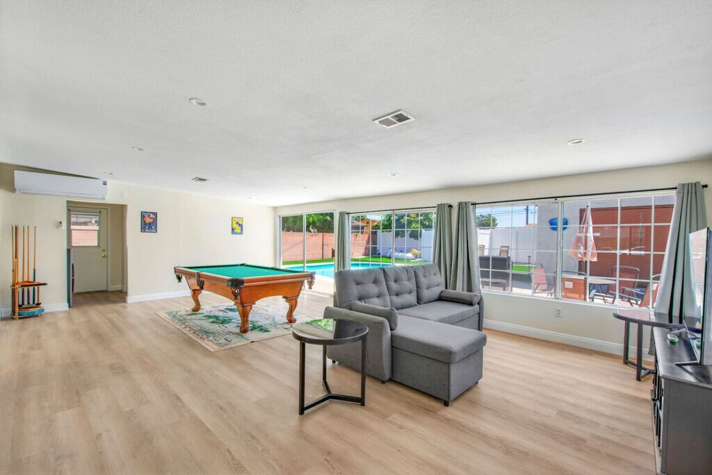 Just minutes from Disneyland and central to SoCal's top entertainment, this home is the perfect getaway for families and groups. Enjoy resort-style amenities including a sparkling pool, relaxing spa, private putting green, and a pool table for indoor fun. Whether you're unwinding after a day at the parks or spending a full day lounging at home, this property has everything you need for comfort, fun, and unforgettable memories. Ideal location, amazing features—your vacation starts here! LIVING ROOM >Open concept living/dining space >Comfortable couch seating (sofa sleeper) >Smart TV (login to own streaming apps) >Pool table KITCHEN >Fully stocked with eating utensils, cooking supplies >Stainless steel appliances >Keurig coffee machine DINING ROOM >Dining table seats 6 people BEDROOMS Bedroom 1: Queen bed Bedroom 2: King bed Bedroom 3: Queen bed *Washer and dryer available with supplies BATHROOMS Bathroom 1: Walk in shower Bathroom 2: Walk in shower BACKYARD >Heatable pool* >Spa >BBQ grill >Seating area >Loungers >Putting green PARKING >Garage parking (no remote provided) >Driveway parking >Street parking (in front of house only) LOCATION Disneyland - 2.5miles Garden Grove Park - 1.5 miles Atlantis Play Center - 1.8 miles Stanley Ranch Museum - 2.2 miles Little Saigon / Vietnamese eateries - 2 miles Koreatown (Little Seoul) - 2 miles SteelCraft Garden Grove - 1.4 miles GEM Theatre - 1.6 miles Haster Basin Park - 2 miles Knottsberry Farm - 8 miles Huntington Beach - 13 miles Los Angeles - 30 miles Guests will have access to the entire home except for the detached shed in the backyard. We want your vacation rental experience to be memorable and convenient. Keeping a comfortable and clean property is what is most important to us. We will be available anytime via messenger to answer any questions or concerns. We take the approach of being hands off on the property unless needed - we want you to feel like you have the home all to yourself! Family friendly neighborhood close to entertainment and restaurants HOUSE RULES >Must be 25 years old to book >No parties >No events >No smoking inside >Quiet time after 10pm (includes loud voices/music) - per city ordinance >No unauthorized guests other than those on the reservation PETS >$25/night per pet >2 pets max >Must be accompanied at all times, picked up after, and not allowed on furniture POOL/SPA HEATING >Pool...$1,000/month (heated to 85 degrees) >Spa...$500/month >Full stay required CAMERAS >Backyard >Doorbell >Driveway ...in place for safety and security reasons, do not tamper with. Not actively monitored. LEFT BEHIND ITEMS >$20 service charge added to shipping cost CREDIT CARD PROCESSING FEES Note: When making a reservation through our website or when using credit card payment there is a 4-6% credit card processing charge that is paid to Stripe (the credit card processing company). If AT ANY TIME there is a cancellation, the 4-6% charge is not refunded. DAMAGE PROTECTION The extra charge listed as “Waivo Insurance” on your reservation covers accidental damage in the home within a certain limit. If something happens or breaks during your stay please let us know immediately so we can file a claim.