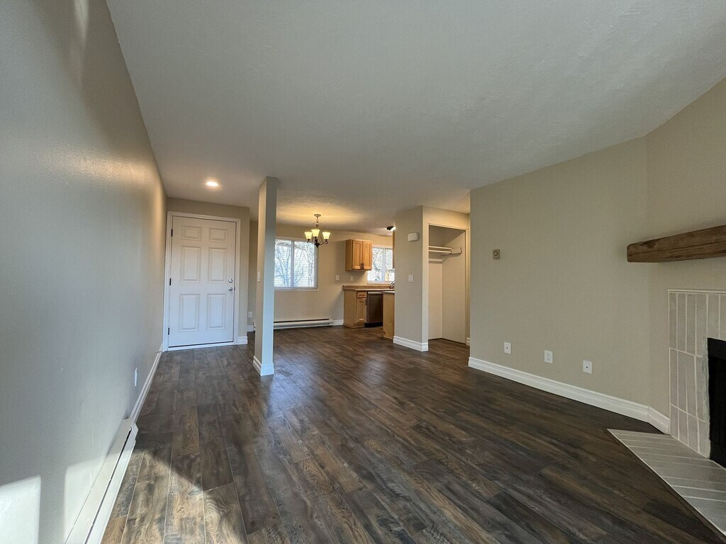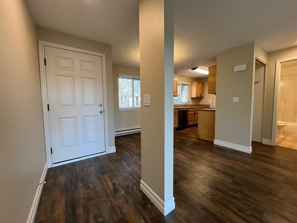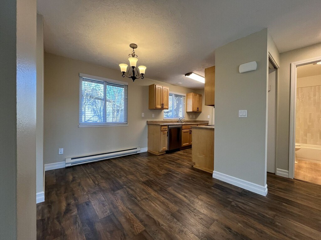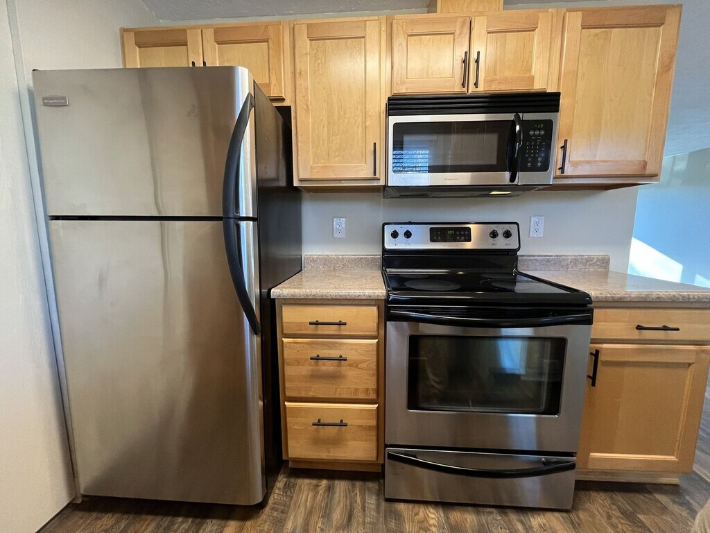 This inviting second-floor one bedroom, one bathroom apartment offers approximately 596 square feet of functional living space along with outdoor amenities and community features. The building is surrounded by a well-maintained grass lawn, and a community tennis court sits just behind the property, providing convenient recreation and additional open space. Inside, the entry flows easily toward the dining and living areas. The living room feels bright and comfortable with a corner fireplace, a sliding glass door opening to the covered balcony, and durable LVP flooring that continues throughout the apartment. The dining area benefits from a hanging pendant light and a wide window that draws in natural light, creating a pleasant environment for mealtime and entertaining. Adjacent to the dining room is a thoughtfully designed kitchen with a two-sided layout for efficient workflow. Light wood cabinets and generous countertop space are paired with stainless steel appliances, including an electric stovetop and oven with a mounted microwave, refrigerator, dishwasher, and a single-basin sink with a bright window above. A pantry closet between the two kitchen sides offers additional storage for dry goods and kitchen essentials. The spacious bedroom features a bright window, mirrored sliding closet doors, and well-planned built-in closet storage for organization. A hall coat closet adds extra functionality while the full bathroom includes a single vanity with a round mirror and a tub/shower combination. Outdoor living is encouraged with a covered balcony that includes an exterior storage area—ideal for seasonal items, gear, or extra household storage. Together, the interior layout, modern conveniences, community features, and outdoor amenities make this apartment an attractive and well-rounded place to call home. **Open Application Period (1/21/2025)** Call or Text Our Leasing Agent to schedule a showing! English Speaking Spanish Speaking YouTube Link: Coming Soon Visit our website to apply and view other homes we have available! Do you need property management services? Maximize your income and cut your costs!