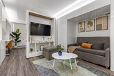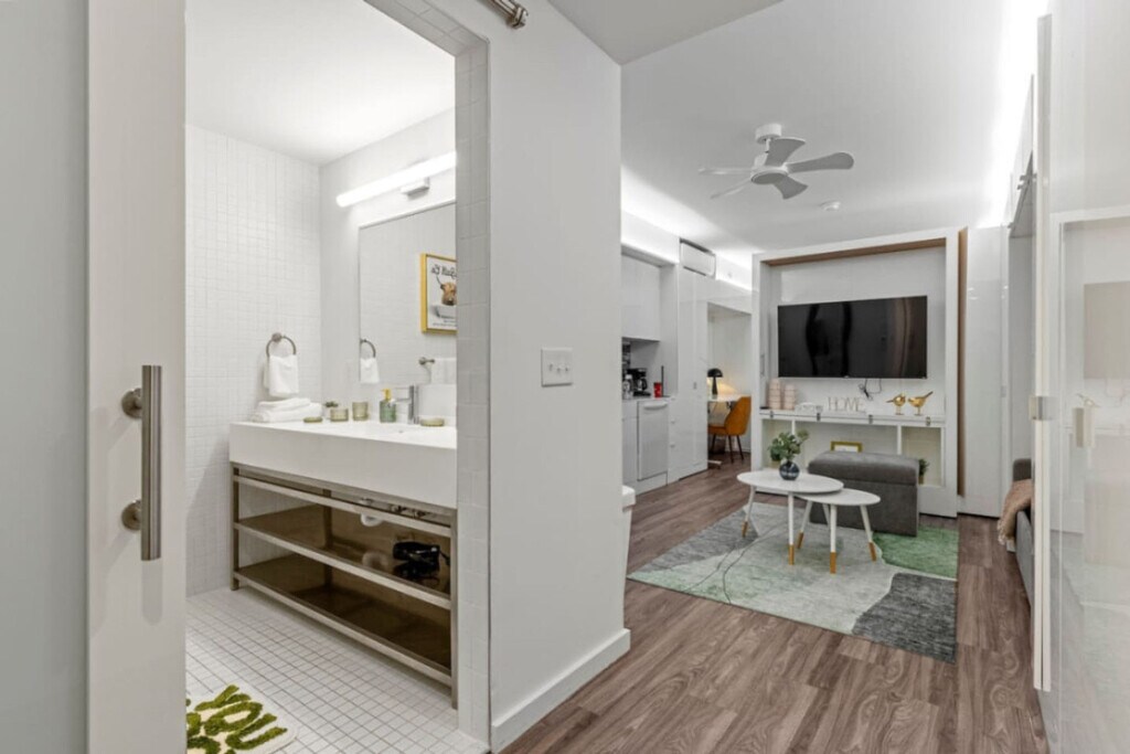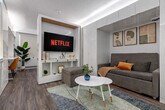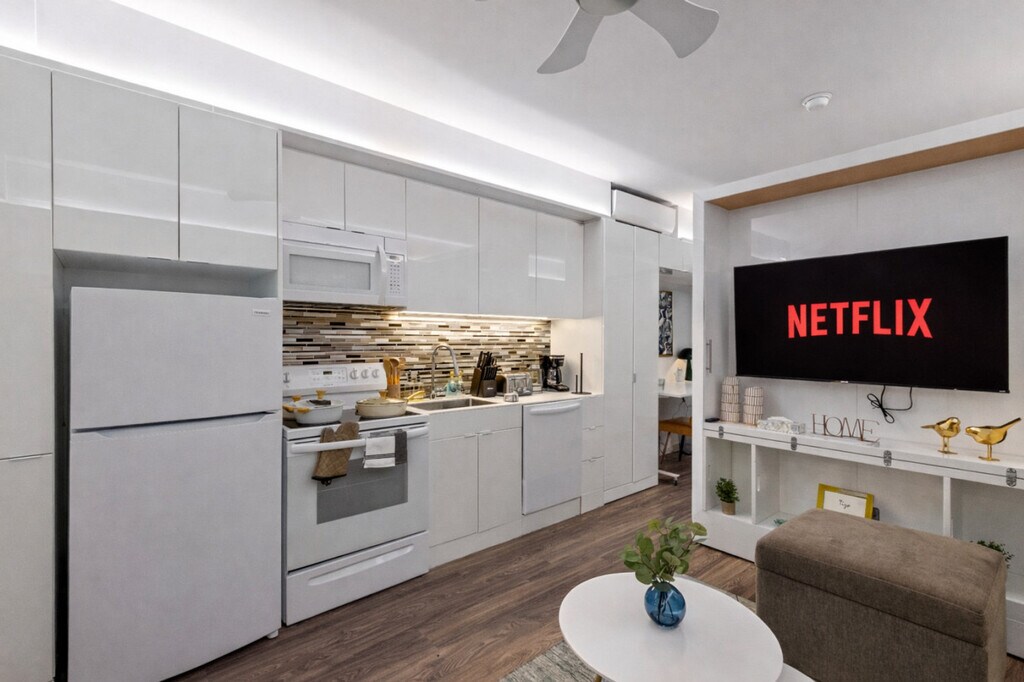 The advertised rate of $2,100/month is the lowest available price, based on a 30 day(s) stay with a move-in date of May 18, 2026. Rates vary depending on the duration of stay, season, and other parameters. For exact pricing and additional pricing components, please visit our website and enter your desired move-in and move-out dates. The rate is applicable when billed upfront; it can be higher if billed in multiple payments. Feel at home in this charming city haven, perfect for professionals and travelers. This 1st-floor apartment offers a handicap-accessible bathroom. This stylish, open-concept apartment features chic furnishings and a convertible floor plan for extra space. The fully stocked kitchen includes a coffee maker, kettle, pots, pans, olive oil, salt, and pepper. Enjoy the convenience of brand-new appliances, a 50" smart TV, an in-unit washer and dryer, and bathroom essentials such as shampoo, conditioner, body wash, and a hair dryer. Additional comforts include air conditioning, room-darkening shades, laundry detergent, dish soap, a coffee and tea station, an iron and ironing board, and fresh linens, pillows, and blankets. Free private parking is available. Access to the rooftop patio is included. Centrally located near University Circle, Cleveland Clinic, Cleveland Museum of Art, Museum of Natural History, and Little Italy’s charming shops and eateries. A quick bike, drive, train, or bus ride takes you to Downtown, Rocket Mortgage FieldHouse, Progressive Field, and Browns Stadium. University Circle and Cleveland Clinic are 8 minutes away, Little Italy is 10 minutes away, and Downtown, Rocket Mortgage FieldHouse, Progressive Field, and Browns Stadium are 12 minutes away. Quiet hours are from 10 PM to 8 AM. Smoking indoors incurs a $500 fine. Unauthorized events will result in a $1,000 fine and removal without a refund. There is a $350 fine per undeclared guest per night. Do not cover or disable the security camera located outside the unit door, as doing so incurs a $500 fine. Pets are allowed, but unregistered pets incur a $500 fine. Check-out is by 10:00 AM, with a late fee of $50 per hour after 11 AM. A noise-aware sensor is installed in the unit to monitor decibel levels. Lost keys cost $100 to replace, and lost fobs cost $150 to replace. Includes a dedicated workspace and high-speed Wi-Fi. [SI]