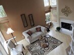 Step into this bright and beautifully upgraded 3-bedroom, 3-bath end-unit townhome featuring soaring cathedral ceilings and incredible natural light throughout. The layout includes two spacious master suites upstairs and a full bedroom and bathroom downstairs, offering flexibility for guests, multigenerational living, or a home office. The home features a modern kitchen with dark cabinetry and updated stainless steel appliances, light laminate and tile flooring, designer paint, and a dramatic spiral staircase that adds architectural charm. The family room is warm and inviting with a fireplace and large windows that enhance the airy feel of the space. An oversized, extra-deep attached two-car garage provides abundant storage, and the dedicated laundry room includes additional cabinetry for convenience. A private patio off the dining area offers a peaceful outdoor retreat with a pleasant view. This townhome blends comfort, style, and functionality in a bright and welcoming setting, ready for its next resident.