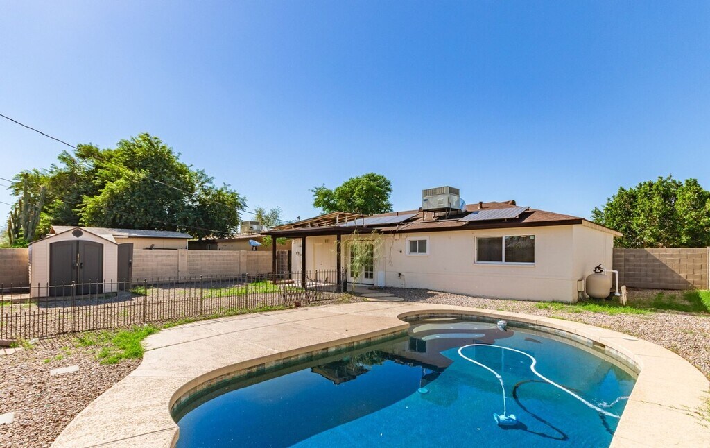 Welcome to your new oasis in Phoenix! This charming 2-bedroom house is perfect for those looking to enjoy a cozy yet modern living space. With a refreshing pool and energy-efficient solar panels, you can relax and save on utilities all year round. Inside, you'll find a well-appointed kitchen featuring: - Gas stove top - Refrigerator - Dishwasher - Garbage disposal - Exhaust hood The home also includes a convenient storage unit, making it easy to keep your space organized. With 1 bathroom and a total of 875 square feet, this property offers a comfortable layout for your lifestyle. Small dogs are welcome, so your furry friend can enjoy this lovely space too! Don't miss out on this fantastic opportunity to lease a delightful home in Phoenix. Showings start on December 9, 2025, and the target lease start date is December 31, 2025. Schedule your visit today and see for yourself why this house is the perfect place to call home! Preferred lease duration is 1 year. This property is unfurnished. Security Deposit amount determined by the owner.
