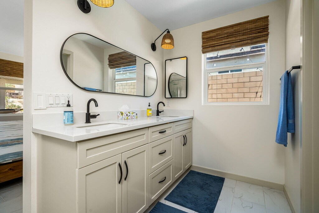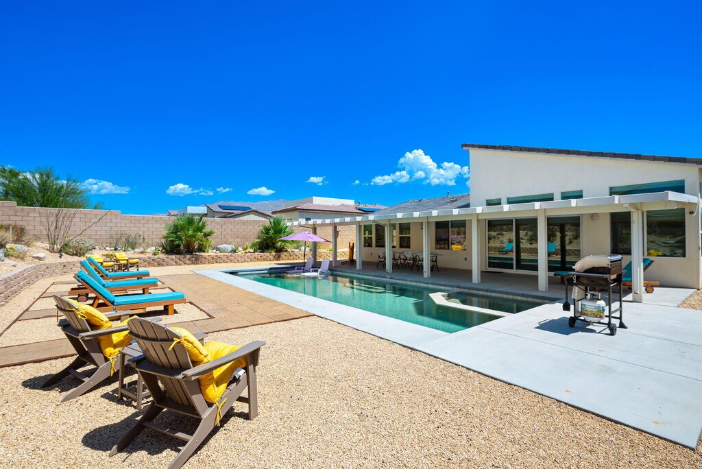 Welcome to this exceptional desert retreat with stunning mountain views offering both comfort and luxury with its thoughtfully designed floor plan inside and out maximizing functionality and comfort. This 1707 sq ft. home features 3 bedrooms. The primary bedroom is on one side for privacy with a large shower and 2-sink vanity and walk-in closet. Guest rooms are on the other side. The guest bath includes shower & tub and 2-sink vanity. There is plenty of space for fun entertaining. Open concept layout connects the chef's kitchen to the great room making it perfect for gatherings. The backyard Is an entertainer's dream that screams luxury resort living with custom built saltwater pool and spa with tanning shelf & umbrella. The backyard has exquisite,terraced landscaping with ample dining and seating/lounging areas including a hammock and BBQ. Imagine sipping on your morning coffee with this view or hosting unforgettable gatherings under the desert sun in this beautiful oasis. Smart TVs throughout. Don't miss out on the opportunity of desert living at its finest just minutes from the I-10 freeway,Palm Springs Airport,and vibrant Downtown Palm Springs and close to local shopping. October $4800,Nov $5500,Dec $6000,Jan--April: $6900/month,May-September: 4500/month. Long term $4900/month.