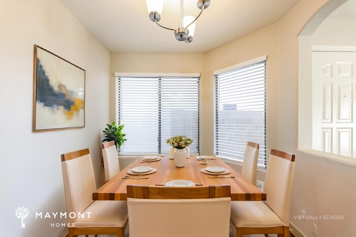 MOVE-IN READY This home is move-in ready. Schedule your tour now or start your application today. Monthly Recurring Fees: $25.00 - Smart Home $10.95 - Utility Management Welcome to 12617 W Pasadena Ave in Litchfield Park, AZ, a thoughtfully designed home offering 4 bedrooms, 2 bathrooms, and approximately 1,314 square feet of comfortable single-level living. The exterior features classic desert landscaping, a tile roof, and an attached two-car garage, creating a welcoming first impression that blends seamlessly with the surrounding neighborhood. Step inside to a bright and open living area where durable hardwood flooring extends throughout the main spaces. The living room flows naturally into the dining area, creating an easy layout for everyday living and entertaining. Large windows allow natural light to move throughout the home, adding warmth to the open design. The kitchen sits just off the dining space and offers generous cabinet storage, granite-style countertops, and stainless steel appliances including a range, microwave, and refrigerator. The layout keeps everything within easy reach while maintaining connection to the main living area. The primary bedroom offers a comfortable retreat with natural light and direct access to a private bathroom. Three additional bedrooms provide flexible space for a variety of needs, while a second full bathroom is conveniently positioned near the main living area. Out back, the patio area extends the living space outdoors and offers a spot to relax or gather. Nearby neighborhood green spaces and playground areas add to the appeal of the location. This home also includes smart home technology with a smart lock and smart thermostat for added convenience. Located in Litchfield Park with convenient access to Loop 303, Luke Air Force Base, and roughly a 25–30 minute drive to downtown Phoenix, this property combines practical design with a connected location. Apply Now! *Maymont Homes provides residents with convenient solutions, including simplified utility billing and flexible rent payment options. Contact us for more details. This information is deemed reliable, but not guaranteed. All measurements are approximate. Actual product and home specifications may vary in dimension or detail. Images are for representational purposes only. Some programs and services may not be available in all market areas. Prices and availability are subject to change without notice. Advertised rent prices do not include the required application fee, the partially refundable reservation fee (due upon application approval), or the mandatory monthly utility management fee (in select market areas.) Residents must maintain renters insurance as specified in their lease. If third-party renters insurance is not provided, residents will be automatically enrolled in our Master Insurance Policy for a fee. Select homes may be located in communities that require a monthly fee for community-specific amenities or services. For complete details, please contact a company leasing representative. Equal Housing Opportunity. This property is subject to homeowners' association (HOA) governance; restrictions and covenants may apply. Estimated availability date is subject to change based on construction timelines and move-out confirmation. This property allows self guided viewing without an appointment. Contact for details.