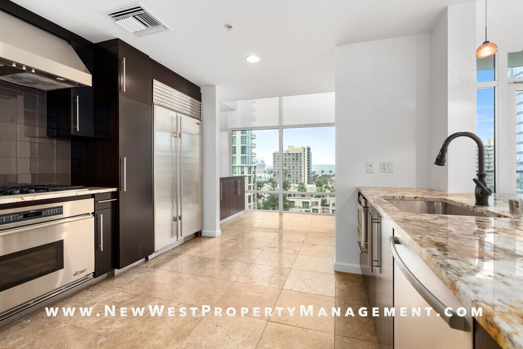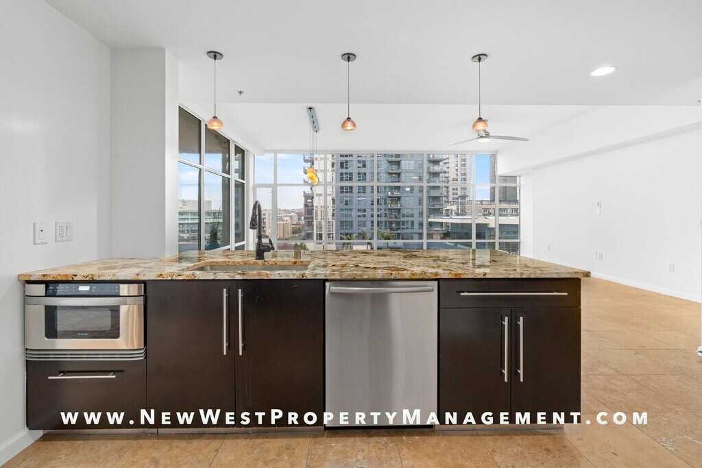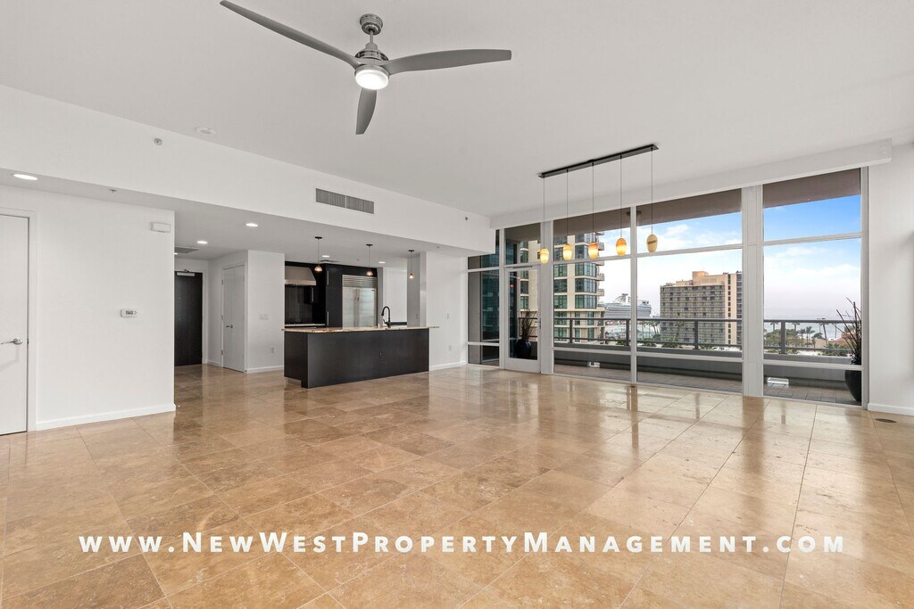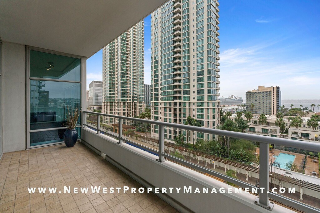 Located on the 8th floor of the esteemed Sapphire Tower, this striking residence offers a premium west-facing balcony with astonishing views of the Bay & City, floor to ceiling double-paned windows, neutral color palette, 2 secured parking spaces and unparalleled community amenities! The expansive living space boasts 10.5ft ceilings, gorgeous wood floors, walls of windows, and direct access to the balcony. Your inner chef will be ecstatic with the well-equipped kitchen of sleek stainless appliances, exotic granite countertops, and adjacent breakfast area. Relax at the end of the day in the primary suite, which includes an organized walk-in closet and connecting bath with dual-granite vanity, glass shower enclosure, and soaking tub for a spa-like experience. You'll definitely relish in the warm summer days and nights on the private balcony, taking in views of the urban street scene, sweeping sunsets, sparkling city lights and beautiful San Diego Bay. The superb amenities at Sapphire Tower, accessed via the 2nd floor, include a pool, spa, BBQ's, sauna, recreation room, and fitness center. Residents and their guests will revel in the luxury of Sapphire Tower, just steps from the heart of Little Italy, and within walking distance of restaurants, cafes, entertainment, and more. Welcome home! *We may receive multiple applications for this property. We do not necessarily select the first application submitted. Selection of a resident is based upon: 1. Credit history 2. Rental references 3. Proof of Income 4. Number and type of pets, if allowed. 5. Move-in date *This property requires a lease start date within 30 days. Small pet may be allowed with restrictions and additional deposit.