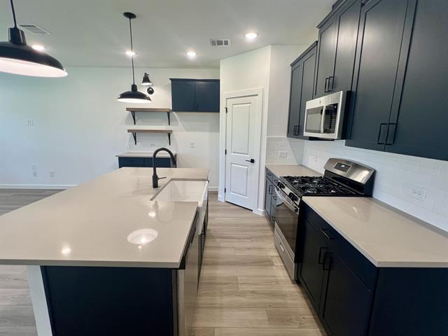 Be the first to experience this stunning never-lived-in, new construction home located in the Mesquite ISD. Featuring 4 spacious bedrooms and 2 full bathrooms, this home offers a modern open-concept floor plan perfect for both everyday living and entertaining. The chef’s kitchen showcases blue shaker-style cabinets, granite countertops, and stainless steel appliances, creating a stylish yet functional space. The private primary suite is tucked away at the back of the home, complete with a luxurious ensuite bathroom for your comfort. Enjoy community amenities including a neighborhood playground and scenic pond just steps away. Don’t miss the opportunity to make this beautiful new home yours!