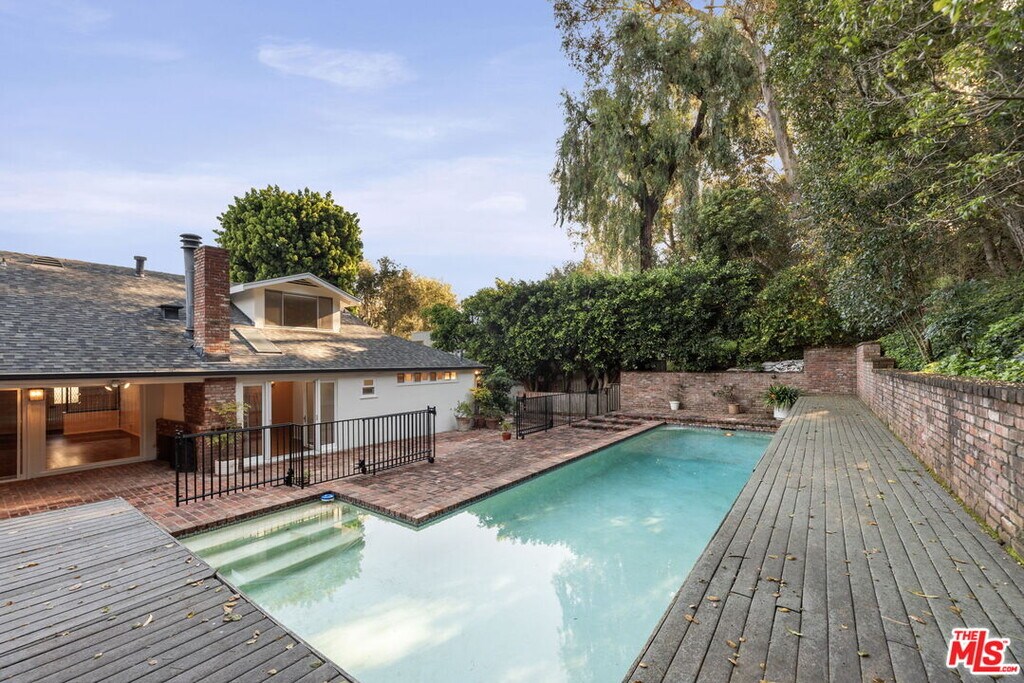 Located just above Sunset Boulevard on one of Brentwood's most desirable cul-de-sac streets, this traditional residence offers exceptional privacy, space, and comfort. Set wide on the lot, the home allows for natural flow and separation ideal for families, guests, and entertaining, with plenty of room for everyone to spread out. This spacious home features 5 bedrooms and 5.5 bathrooms, with each bedroom offering its own en-suite bath. Two upstairs bedroom suites are thoughtfully positioned on opposite sides of the home perfect for guest quarters, exercise room, or home office. The expansive primary includes a sitting area, fireplace, and French doors opening to a private rear patio with outdoor fireplace creating a peaceful retreat. Designed for easy living and entertaining, the home offers a large open living room, formal dining room, and adjacent family room with fireplace off the kitchen. The kitchen features a center island, abundant storage, and space for an eat-in breakfast table. Additional highlights include refinished hardwood floors, wood-beamed ceilings, new washer and dryer, new A/C, and four fireplaces located in the living room, den, primary bedroom, and outdoor patio. The private backyard has great tall trees with a fenced pool and spa, brick patio, grassy yard area, and mature landscaping throughout. Enjoy excellent walkability into Brentwood and Brentwood Park plus easy access to mountain biking and hiking, along with nearby Dog Park perfect for active lifestyles and pet lovers alike. Additional amenities include Tesla charger availability and placement within the Kenter Canyon School district. MLS# 26654621