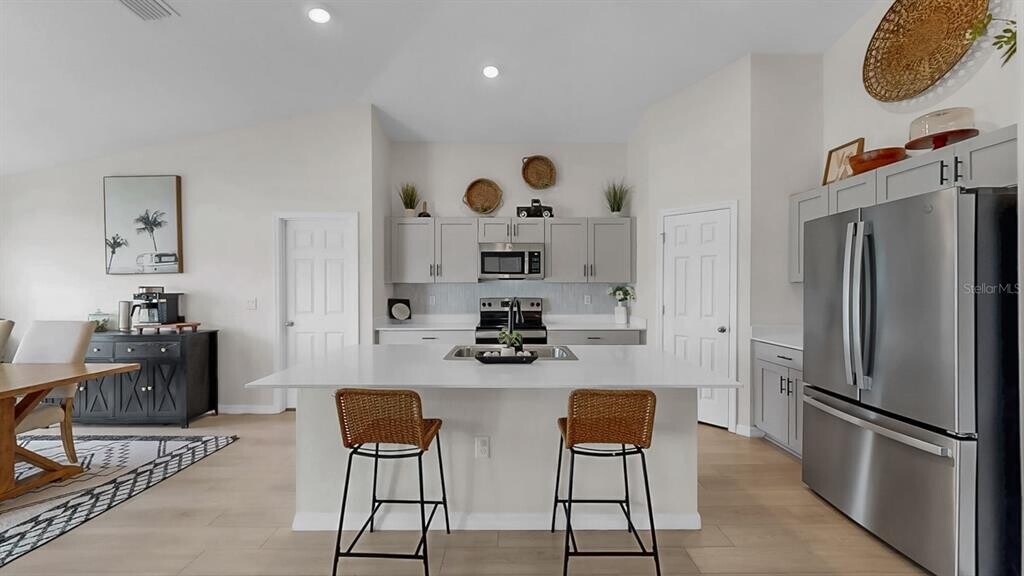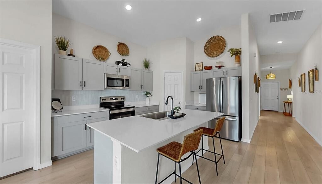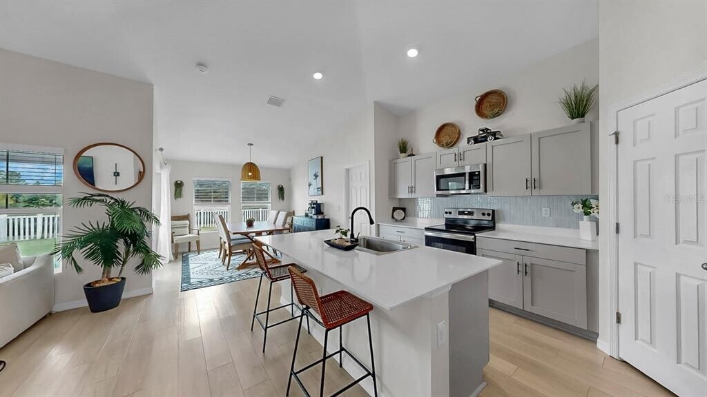 ***ELECTRIC INCLUDED IN RENT PRICE*** Welcome home to this CHARMING 4 bedroom,2 bath home situated on a PREMIUM lot with picturesque western facing pond views for the most beautiful sunsets,and NO REAR NEIGHBORS! Inside,owners have added stylish upgrades around every corner with tasteful designs choices,like light wood-look LVP flooring,designer light fixtures,and a neutral color palette. The split-bedroom layout offers privacy,with the spacious primary suite tucked away at the back of the home,featuring serene pond views,an ensuite bath with dual sinks,a glass-enclosed standing shower,private water closet,and a large walk-in closet. The kitchen is a true highlight,boasting quartz countertops,trendy gray cabinetry,and a pale blue-green tile backsplash that adds a touch of charm. Located just a short walk away from the neighborhood elementary school,the Goddard School preschool and the amenity center and pool,this home is situated in a prime location in Triple Creek. Triple Creek offers its residents access to THREE resort-like community pools,TWO fitness centers,TWO clubhouses,tennis,basketball volleyball and pickleball courts,playgrounds,walking trails,dog parks and more. Triple Creek also has an active social committee and offers community wide events for its residents. Call to see this beautiful home before it's gone! Electric included in rental price - tenant to only pay $14 solar connection fee to TECO and any overage charges not covered by solar panels. MLS# TB8428658