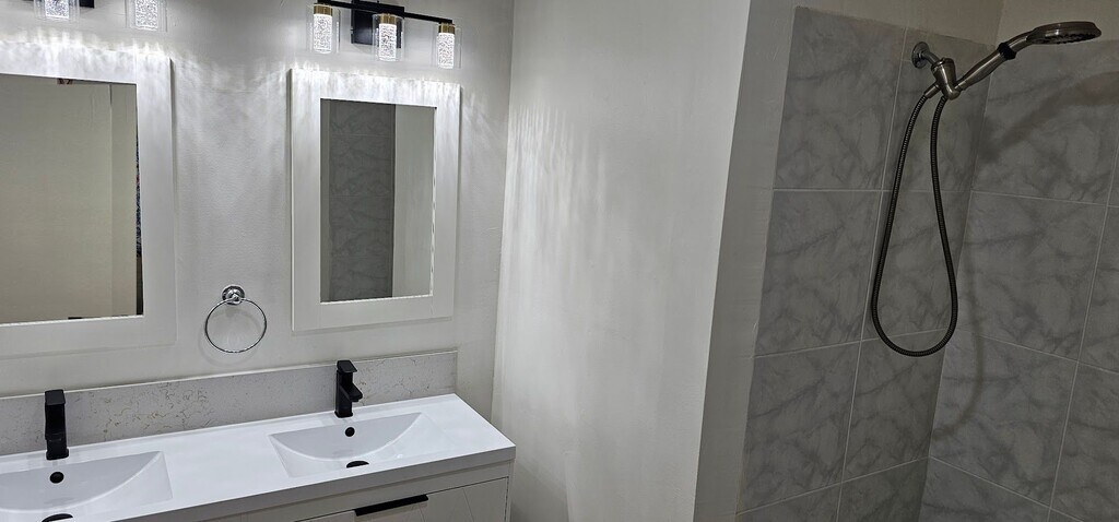 Recently remodeled 2-bedroom, 2-bathroom ground-level home featuring a brand-new modern kitchen, updated bathroom fixtures, tile flooring throughout, fresh paint, ceiling fans, a spacious living room & oversized bedrooms. Enjoy the ease and comfort of single-story living in a thoughtfully updated home.