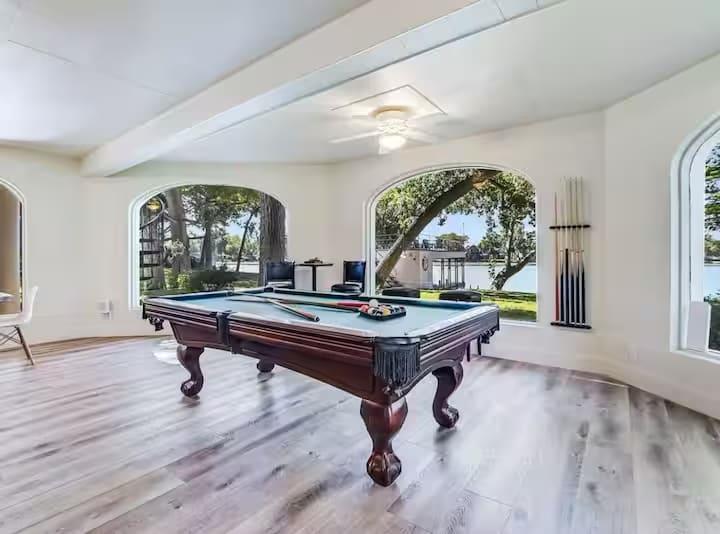 Experience luxury lakefront living in this fully furnished, custom-designed two-story home with unparalleled views of Lake McQueeney from the main living and dining areas. Nestled on a beautifully landscaped 1.3-acre lot with towering trees and a circular drive, this seven bedroom, seven and a half bathroom masterpiece offers elegance, comfort, and functionality. Step inside through a dramatic two-story atrium entry, highlighted by a hill-country stone elevator tower and a sweeping architecturally balanced circular staircase. Every inch of this home reflects thoughtful design and high-quality construction, with upscale features like an interior elevator, central vacuum system, and three spacious dining areas perfect for everyday living or entertaining. The home boasts over 200 feet of improved waterfront, complete with a private boathouse, dock, storage, and boat lift—ideal for embracing the lake lifestyle. Whether you’re enjoying a quiet morning coffee with lake views or hosting guests for a weekend getaway, this home provides the perfect setting. A rare opportunity to own a fully furnished, move-in ready waterfront estate on Lake McQueeney — schedule your private tour today.