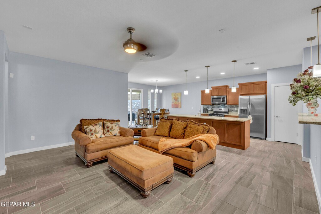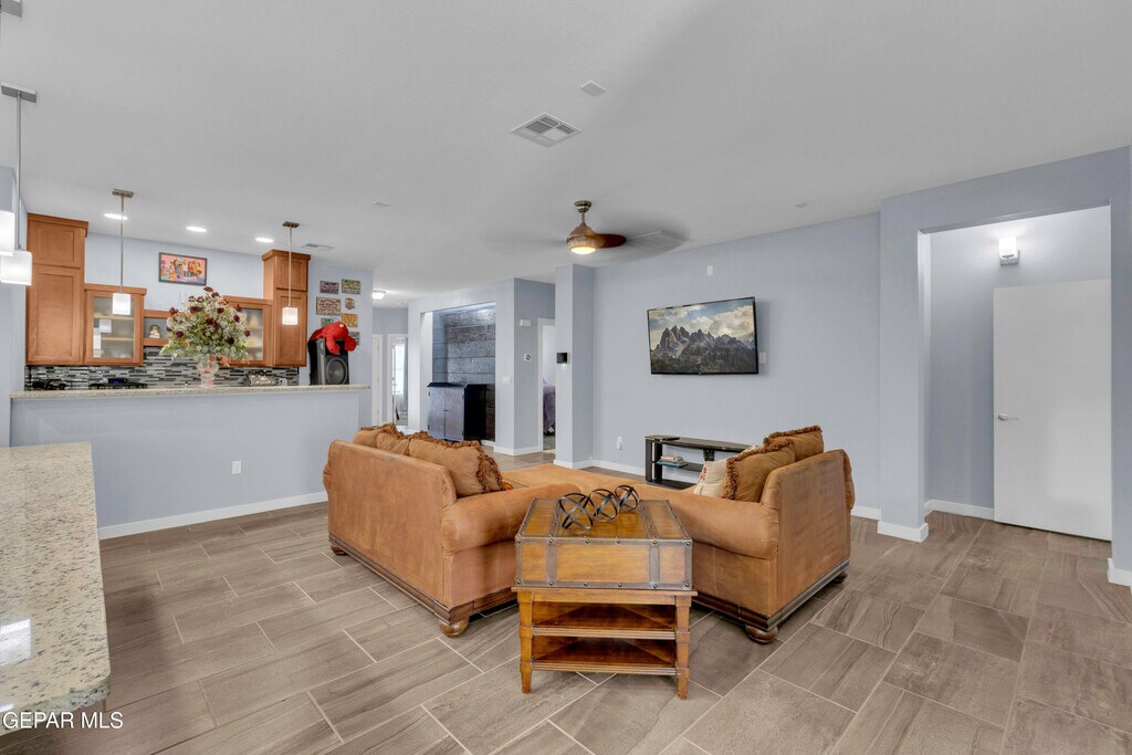 Welcome back to Horizon Hills,where convenience,comfort,and natural beauty come together effortlessly! Live just moments from shopping,entertainment,and scenic outdoor escapes. Step inside and discover an open,inviting layout designed for unforgettable gatherings. The spacious family room flows seamlessly into a charming country style kitchen,a bright dining area,and a stylish wet bar--perfect for hosting friends or enjoying cozy nights in. The primary suite is your personal retreat,complete with an en suite bathroom and a generous walk in closet. With three additional bedrooms,this flexible floor plan adapts to your lifestyle--whether you need space for family,a home office,a hobby room,or guest accommodation. A home that blends practicality,personality,and prime location Horizon Hills makes everyday living feel extraordinary. All just minutes from I 10 and Loop 375,giving you quick access to major employers,shopping centers,restaurants,and outdoor recreation.