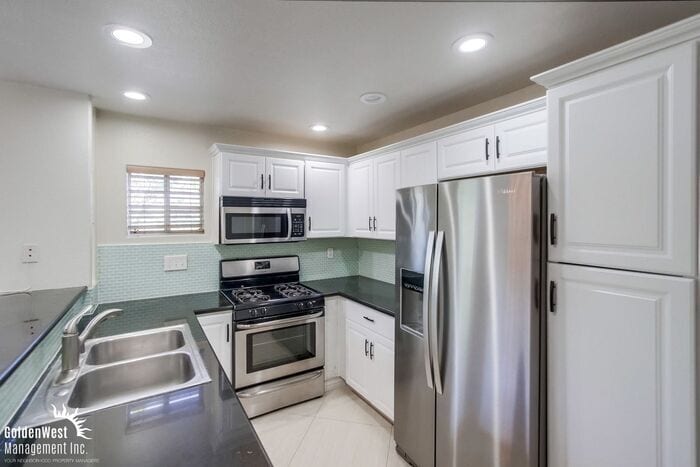 Elegant Dual Master 2Bdm 2.5Ba Townhome in Carmel Valley Elysian Community! Experience modern living in this light and bright dual master townhome. The open concept layout features tastefully designed travertine tile floors throughout the downstairs, a cozy gas fireplace with built in entertainment section, and oversized windows that bring in plenty of natural light. The updated kitchen boasts marble countertops, decorative tile backsplash, white cabinetry, stainless steel appliances, and a stylish breakfast bar, perfect for entertaining. A convenient half bath and laundry closet with washer & dryer are also located on the first floor. The primary suite downstairs includes a walk in closet, dual vanities with framed mirrors, and an elegantly tiled shower. Upstairs, the second master bedroom offers newly installed LVP flooring, two closets (including a walk in), and its own en suite bath for privacy. There is a detached tandem two-car garage as well as a private patio. The community features two pools, a gym, a spa, and plenty of guest parking. Tenant pays all Utilities. Pets with approval via process. This property allows self guided viewing without an appointment. Contact for details.