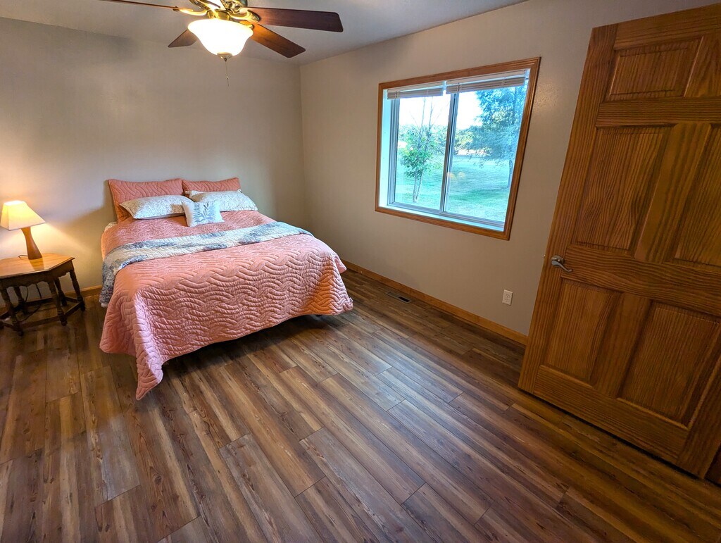 This spacious side-by-side home is in a desirable single-family neighborhood on a cul de sac. Chippewa Falls is known for its small town feel, yet large town amenities, Leinenkugel brewery and the sprawling Irvine Park Zoo. Renters will enjoy the fresh, light and spaciousness of the home as well as the main floor laundry room, and ample storage room, closets and 2 car attached garage. Enjoy the country view from the large kitchen with pantry and maple cabinetry as well as isolated primary bedroom with ensuite and walk-in closet. New appliances, fresh paint and updated flooring in the primary bedroom and entire lower level give this home a very welcoming feel. The house is an owner occupied side-by-side duplex and offers all the amenities of a quiet family-friendly neighborhood, large backyard, very close to parks, only 5 minutes outside of town, and includes lawncare and snow removal. Renter pays all utilities yet can expect a break in energy bills this winter due to the exceptional building quality and geothermal heating/cooling system. 3.5 miles to HWY 53, 4 miles to HWY 29. Just 10 minutes from Lake Hallie shopping.