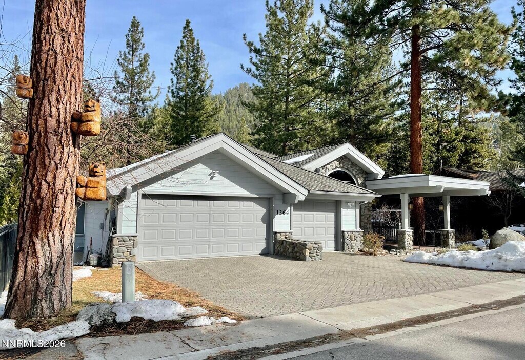 Experience the essence of Tahoe living at 1264 Hidden Woods,a stunning 5,427-sq-ft mountain retreat set on a .41-acre lot backing to National Forest,providing the rare luxury of your own forest escape with access to miles of hiking and biking trails from your own backyard. Nestled in Hidden Woods,an enchanting and highly sought-after Lake Tahoe community,featuring just 26 custom-designed homes,while underground utility lines preserve the landscapes natural beauty and charm. Furnished for a seamless,turnkey experience. This home invites you to dive straight into Tahoe's renowned four-season lifestyle. Just bring your skis,paddleboard,and sense of adventure. Inside,discover five spacious bedrooms and five-and-a-half baths across two thoughtfully designed levels. The main-level showcases soaring ceilings and expansive windows that flood the space with natural light. A river-rock gas fireplace anchors the living area with warmth and character,while a built-in bar and generous entertaining space make hosting effortless. A dedicated home office offers an inspiring setting for productivity or creative pursuits. The primary suite is a true retreat,featuring it's own fireplace,two walk-in closets,and an en-suite bath with dual sinks,soaking tub,and separate shower. Two additional guest bedrooms and baths are also located on the main-level,offering ideal single-level living. The lower level offers a spacious secondary living area that doubles as a game and entertainment room,complete with a pool and ping-pong table,plus another built in bar. Wine connoisseurs will delight in the dedicated wine room,perfectly designed to store and showcase a prized collection. A private guest suite with its own en-suite bath and sliding glass door opens to a secluded forest-facing patio,ideal for visitors or extended stays. Fitness enthusiasts will appreciate that one of the bedrooms has been thoughtfully converted into a fully equipped home gym that also has an en-suite bath and walk-in closet. Whether you're hosting cozy après-ski evenings by the fireplace or celebrating summer barbecues with friends,this residence embodies the ultimate year-round mountain lifestyle. Framed by towering pines,the home features two expansive raised decks,where you can unwind in the Jacuzzi hot tub,with crisp mountain air and tranquil surroundings. A three-car garage provides ample space for vehicles and Tahoe toys. Beyond the property's boundaries,you'll have access to a wealth of year-round recreational activities. Explore nearby world-class ski resorts,or enjoy thrilling water sports on the pristine waters of Lake Tahoe. It's the perfect retreat after a day of outdoor adventures. If you're seeking a private mountain escape,this luxury retreat is the opportunity you've been waiting for. Schedule your private showing today and experience Tahoe living at its finest. Property also offered for sale under MLS #260001087. MLS# 260001865