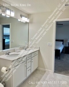 Fully Furnished 4-Bedroom Lakeview Home with Premium Finishes Welcome to 1264 Regal King Drive, a stunning two-story, fully furnished home offering 4 bedrooms, 3 bathrooms, and 2,207 square feet of thoughtfully designed living space. This home combines comfort, style, and functionality with serene lake views and a 2-car garage. The open-concept first floor is perfect for everyday living and entertaining. The modern kitchen flows seamlessly into the café and gathering room and features stainless-steel Whirlpool appliances, a functional center island, bright white Fairview cabinetry, Tender Gray subway tile backsplash, Lagoon quartz countertops, and a spacious storage pantry. Sliding doors lead to a covered lanai overlooking the lake—ideal for relaxing or enjoying Florida evenings. A guest bedroom and full bathroom are conveniently located on the main level. Upstairs, you'll find a spacious loft, laundry room, two additional bedrooms, and a third full bathroom, providing plenty of room for everyone. The Owner's Suite is a private retreat featuring a large walk-in closet and a luxurious en suite bathroom with dual sinks, a quartz-topped double vanity, and a walk-in shower. This beautifully furnished home offers both comfort and convenience in a desirable Kissimmee location—perfect for families, professionals, or those seeking a turnkey rental with scenic views.