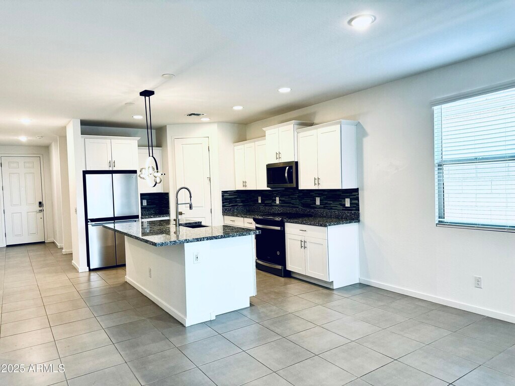 Built 2023,beautiful home with 4 bedrooms/office and three full baths. Split floor plan. Not Age Restricted community! The guest bedroom has its own bathroom away from the rest of bedrooms. Backyard landscaping is finished with artificial turf and trees! White cabinets,stainless steel appliances w/gas range. New dishwasher. Tiles everywhere but the 4 bedrooms (upgraded carpet),raised vanities in all the bathrooms. Nice pavered driveway and sidewalk. Ceiling fans installed. Laundry room has a sink for all your cleaning needs. Backslash and island ceiling lights in the kitchen just installed. Close to freeway 303 and major Peoria shopping. Close to Top 1 Peoria Basis school. About 15 miles to I17 & State freeway 303 intersection.