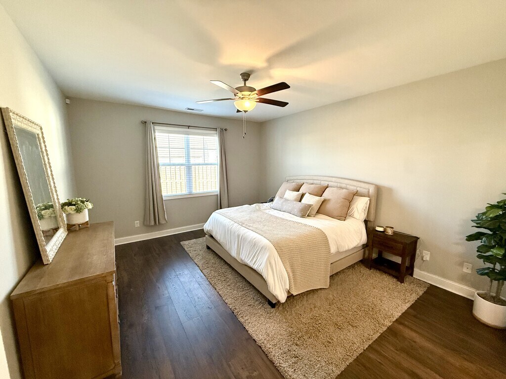This 3BR/2Bath features an open layout with a spacious foyer leading into the great room and kitchen. The kitchen offers granite countertops, stainless steel appliances, an island, tile backsplash, ample cabinetry, and a pantry. The primary suite is privately located at the back of the home with a walk-in closet, dual vanities, and a large shower. Two additional bedrooms sit at the front of the home. A generous mudroom with built-in cubbies connects to the two-car garage. Outside, enjoy a spacious backyard perfect for relaxing or play. Washer/dryer included.