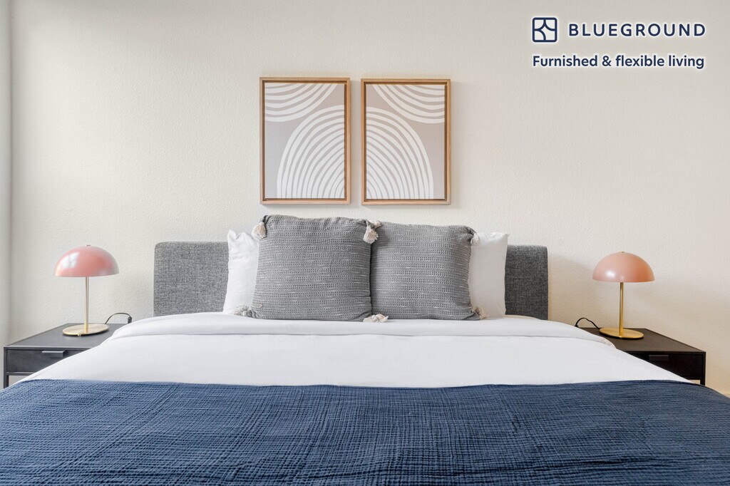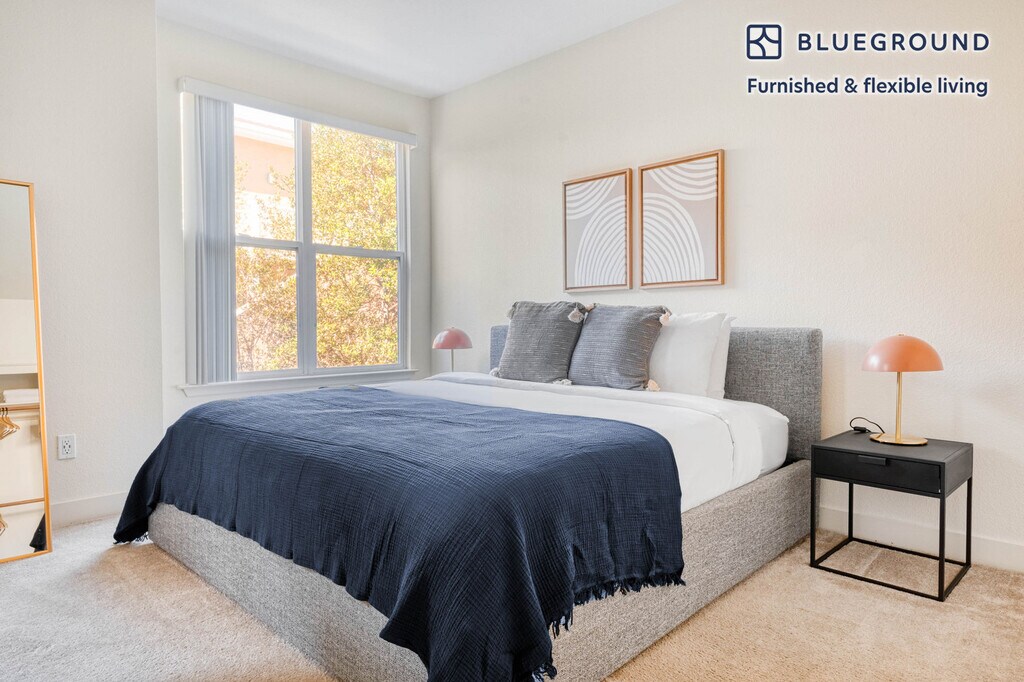 Discover the best of Sunnyvale, with this one bedroom apartment in Sunnyvale. It’ll be easy to simply show up and start living in this fashionably furnished apartment with its fully equipped kitchen, cozy living room, and our dedicated, on-the-ground support. (ID #SFO1135) The advertised rate of $2,590/month is the lowest available price, based on a 1 month(s) and 3 day(s) stay with a move-in date of December 16, 2025. If you’re looking for a 1-year stay, the rate is $3,770/month. Rates vary depending on the duration of stay, season, and other parameters. For exact pricing and additional pricing components, please visit our website and enter your desired move-in and move-out dates. The rate is applicable when billed upfront; it can be higher if billed in multiple payments. Brokers are welcome to reach out. Were you looking for an unfurnished lease? Try Blueground instead and upgrade from unfurnished to furnished living: - Furnished at rates comparable to unfurnished - No setup or furniture costs - save thousands - Move-in ready - save time, just bring your suitcase Designed with you in mind Thoughtfully designed with bespoke finishes, modern furnishings, and a fully equipped kitchen, you’ll enjoy that “I’m home” feeling with this Blueground apartment. Whether you’re lounging in your charming living room streaming the latest and greatest entertainment on the smart TV or premium wireless speaker, or getting some well-earned rest on the superior quality mattress with luxury linens, you’ll fall in love with everything this Sunnyvale apartment has to offer. This apartment also offers in-apartment laundry. Sleeping arrangements King Bed, 70.8in/180cm Amenities Building amenities unique to this one bedroom apartment include an on-site: - BBQ Area - Dryer - Elevator - Swimming pool - Washing machine - Lounge - Parking - Pets allowed - Playground Arrival and ongoing support The entire apartment is yours to enjoy! Throughout your stay, you’ll have access to our Client Experience team through the Blueground App. You can schedule additional cleanings, submit maintenance requests, and view our neighborhood recommendations with just a few taps. We’ll share all details upon confirmation of your stay. Ideally Located This furnished home is in the heart of the South Bay's Sunnyvale, with headquarters to many tech companies. Situated to the north of Santa Clara and to the south of Mountain View, Sunnyvale is a mid-sized city with nearly 150,000 residents. The median age is 35 years old, with a male to female ratio of 50/50. Sunnyvale is best known for its downtown on Murphy Avenue, which still retains its small-town feel. There are two golf courses at the Sunnyvale Golf Course, including an 18-hole championship course. Other things to note Building amenities may have an extra cost. This Blueground apartment has flexible lease options, allowing you to book it for one month, a year, or more. Pets are welcome, though weight limits and breed restrictions apply and may incur fees. Parking is offered based on availability and is subject to a fee. We take great pride in ensuring every photo displayed is shot in our own units with our actual furnishings. That said, we regularly refresh our decor and furniture arrangement, which may differ from what’s pictured. [SI]