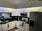 Beautifully remodeled 2-bedroom, 1.5-bath condo in the highly desirable Century Village – a 55+ community. This turn-key unit features a sleek, modern kitchen with granite countertops, a brand-new refrigerator, and in-unit washer and dryer for ultimate convenience. Enjoy the smooth ceilings (no popcorn!), contemporary furnishings, and a tranquil garden view from your private balcony. The layout offers comfortable living and entertaining space with an additional half bath for guests. This well-maintained, move-in ready home is located in a quiet section of the community with easy access to amenities, clubhouse, tennis court, pickleball courts, gym etc.