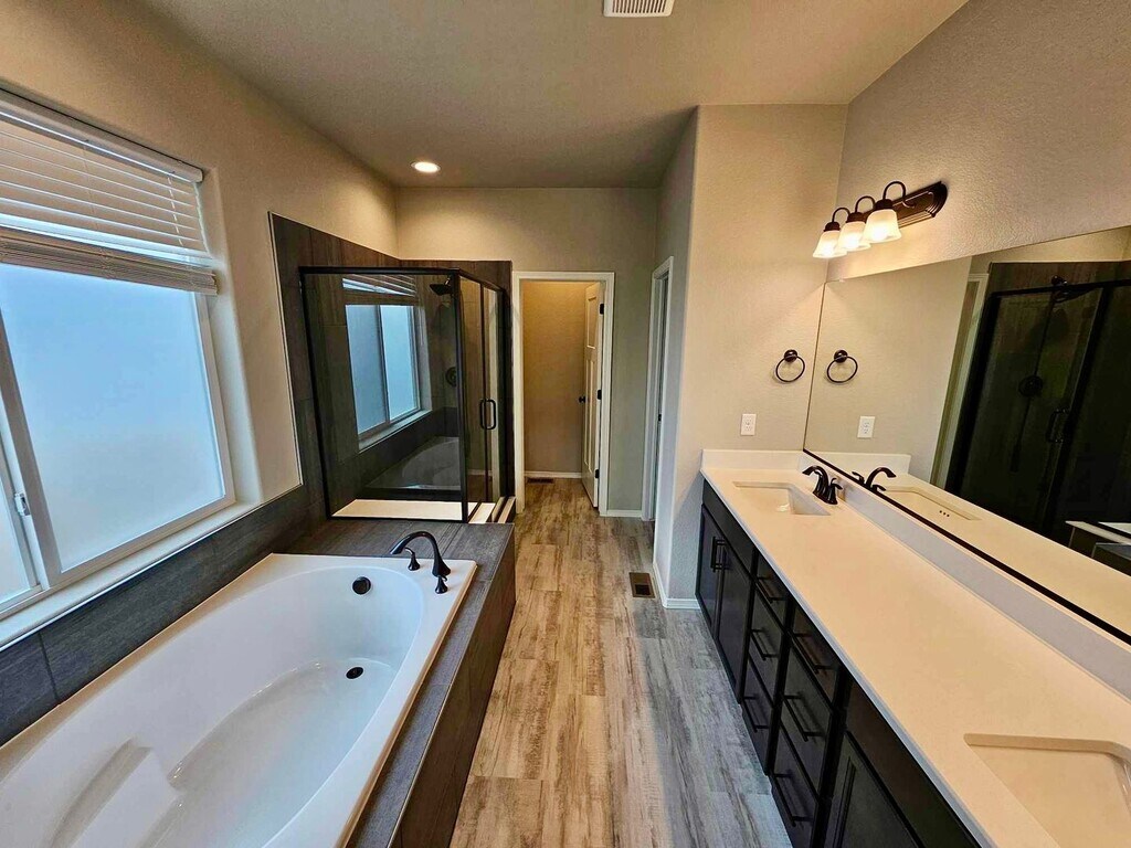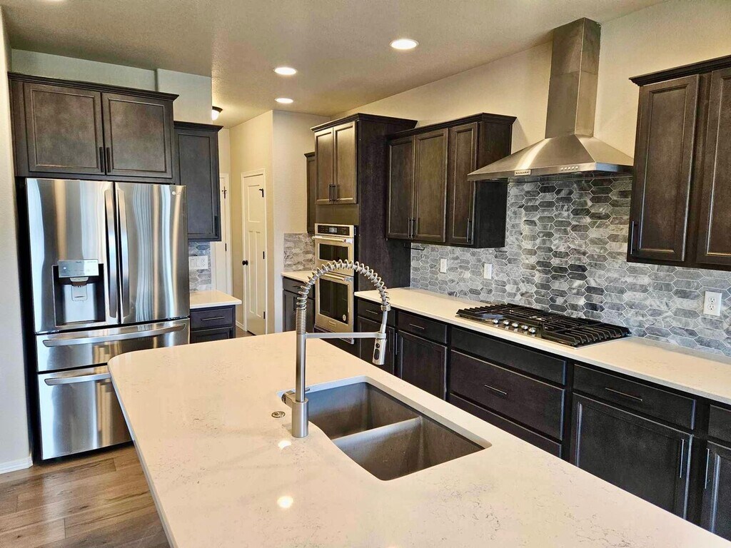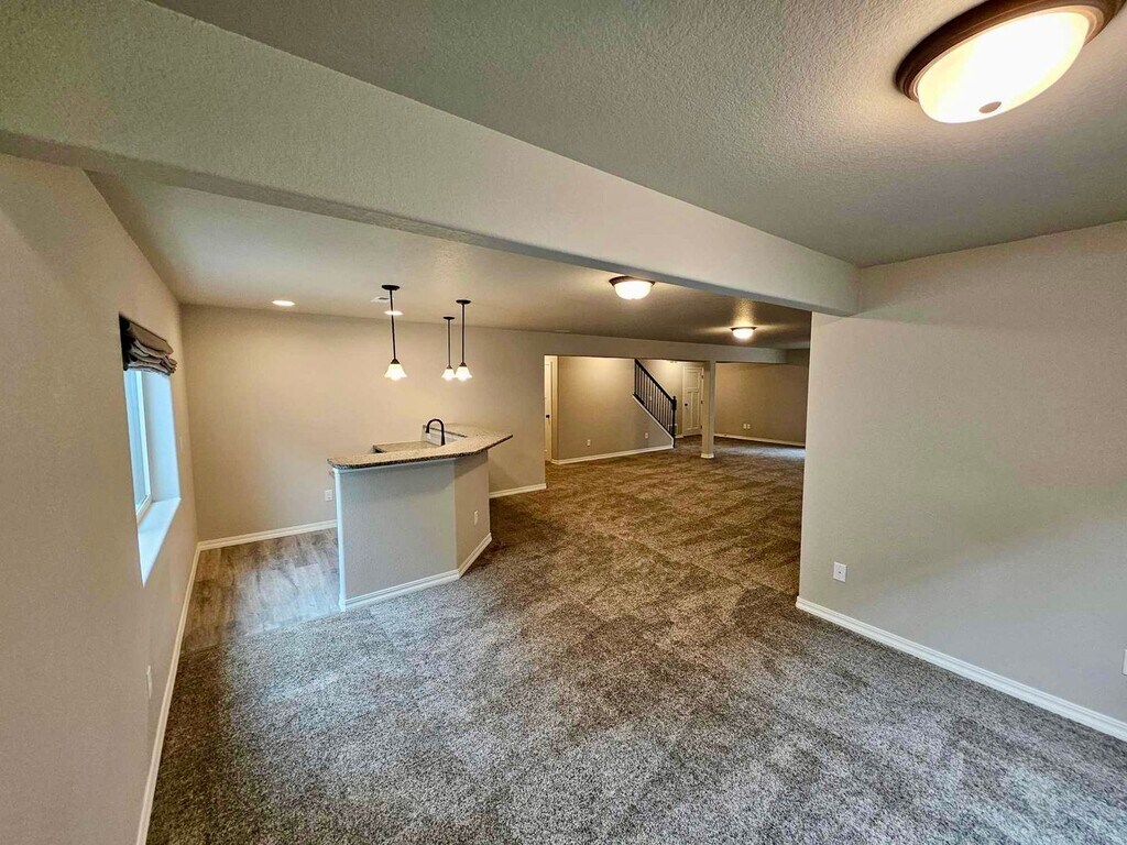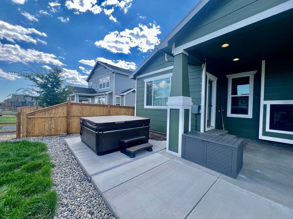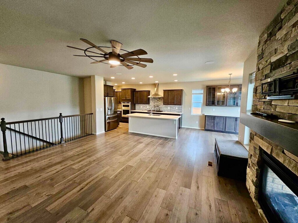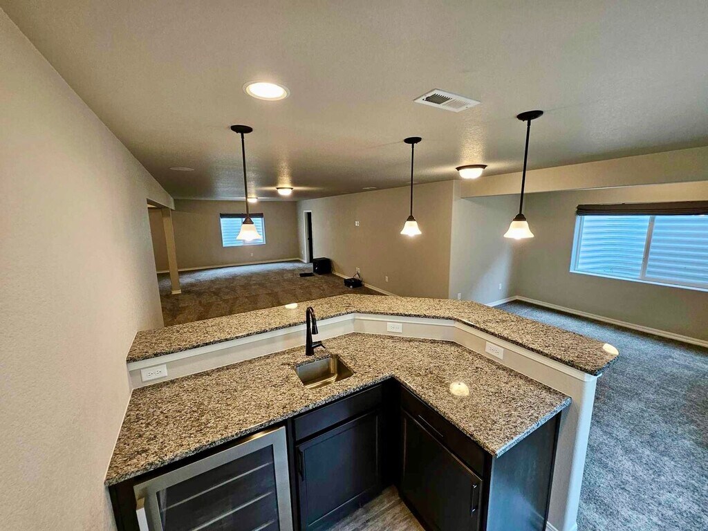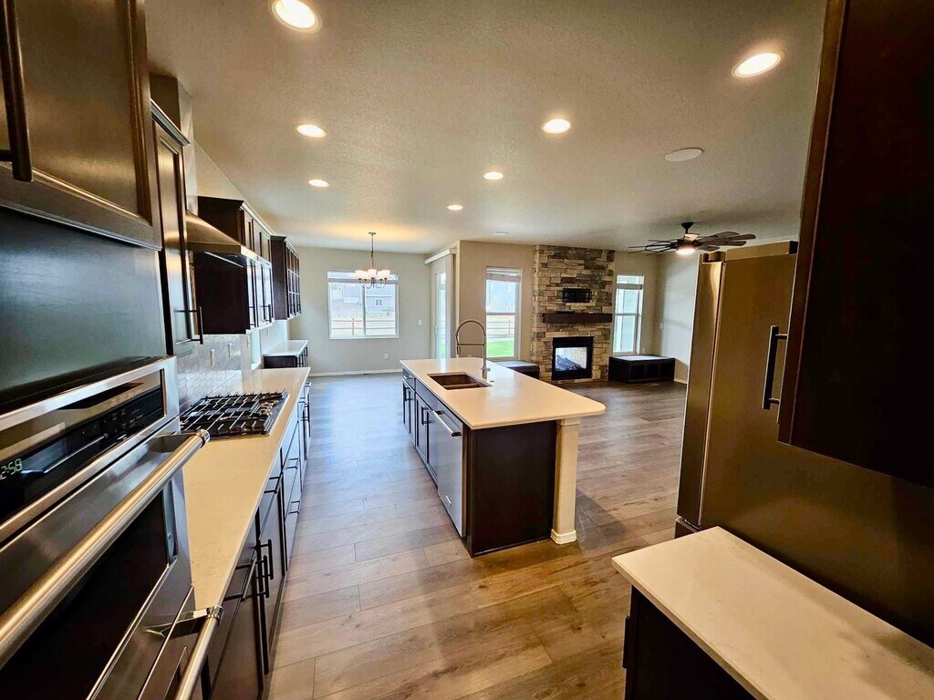 Built in 2021 with upgrades from top to bottom! LVP flooring and modern lighting through open concept main level common areas. Living room includes indoor/outdoor double sided fireplace with stone surround. Dining area with additional cabinetry walks out to covered patio and fenced backyard with salt water hot tub and dog run! Property backs to greenbelt with walking path! Gourmet kitchen features large island, quartz countertops, complimentary backsplash, convection oven, gas range/vent hood and pantry! Master suite on main level includes walk out to back patio, attached 5 piece bath with dual vanities, large shower and walk in closet! Additional bedroom on main level makes for great flex/office space! Finished basement provides large family room with wet bar and wine fridge, breakfast nook, and two additional bedrooms! Additional property amenities include central air, 3 car garage, central vac system, toe kick vacuum under kitchen sink, Sonos surround system in basement and more! Located close to schools, parks, hiking/biking trails and more! Metro dues included in tenant paid water bill, provides access to amenities in the neighborhood. 12 Month Lease Security deposit must be paid in certified funds. Amount based on credit report findings. Allows 2 pets up to 100 lbs. Management approval needed. No aggressive breeds. Virtual Tour: