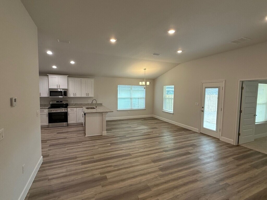 Come take a look at this New 3-bedroom 2 bath split floorplan home in Savannah Station. It features include high ceilings, large great room, open kitchen with granite countertops overlooking the large living room, with eat in kitchen. The primary suite features a large walk -in shower and dual sinks. Lots of room to gather with family and friends. Other features include a large, covered lanai and luxury vinyl plank flooring in main living areas. Savannah Station amenities include a playground, green space, sidewalks and streetlights. Come take a look today.