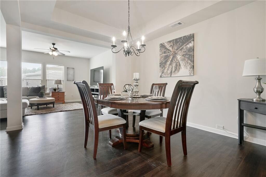 Bigger Square footage,Large open loft,added dinning room with updated with neutral design touches. Walk in to your wide open foyer with views all the way to the gorgeous,large backyard. Open Concept living allows for easy entertaining from the formal dining area,updated kitchen to the spacious family room. Kitchen features refrigerator,granite throughout and plenty of counter space for meal prep. Enjoy relaxing in the amazing family room and move the entertaining outside to the large patio. The loft upstairs provides for an office,play space,or work out space. Upstairs features a very spacious master retreat,light & airy bath oasis and massive walk in closet. The master bath is complete with double vanity & separate soaking tub and shower. The secondary bedrooms are just as spacious with plenty of storage and room to spread out. This home has been meticulously cared for and is move in ready. Washer/ Dryer remain with the home. Close to GA 400,shopping,Dawsonville Outlets,restaurants,and the Halcyon. MLS ID 7713397