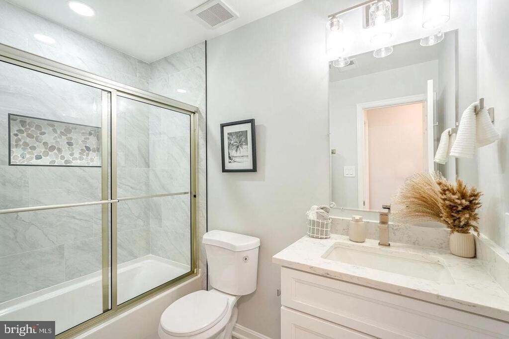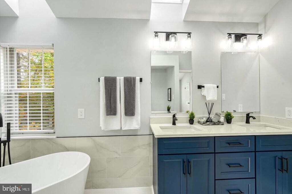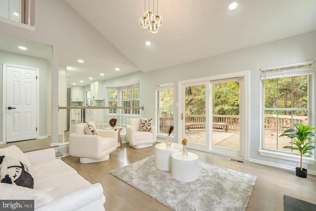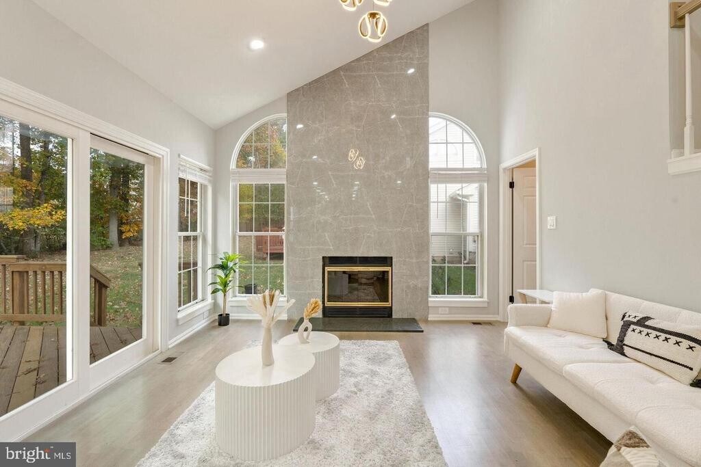 Renovated from top to bottom, this Old Bridge Estates home offers luxury, space, and privacy across three finished levels. Enjoy a sun-filled main level with soaring ceilings, a wood-burning fireplace with porcelain tile accents, and a seamless flow into a beautifully updated kitchen featuring quartz counters, new appliances, and ample storage. Step onto the deck for peaceful, tree-lined views. Upstairs, unwind in the expansive primary suite with a spa-inspired bath, plus three additional bedrooms. The finished lower level includes flexible living space, a den/office, and a full bath, ideal for guests or work-from-home. Outdoor deck and patio complete the home. Community amenities include pool, tennis courts, and playgrounds.