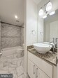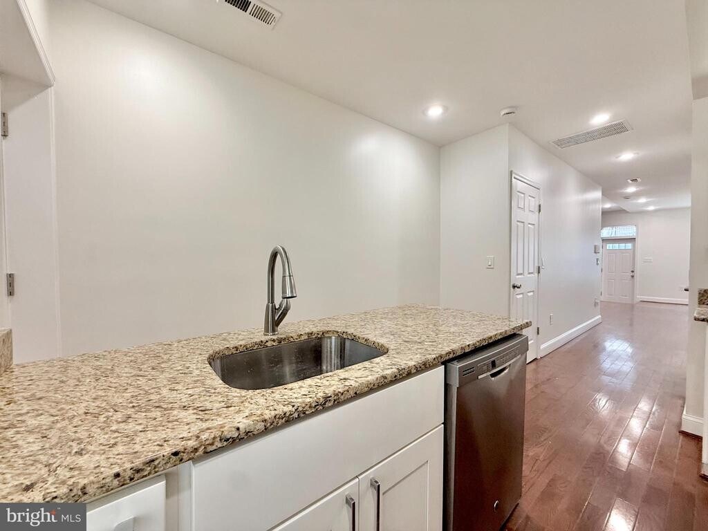 Wow! Bright, airy, open and boasting absolutely glowing hardwood floors throughout, all LED recessed lighting, convenient main level half bath and window treatments already installed (privacy!) The spectacular kitchen will please the most accomplished epicurean with its stainless appliances, attractive granite countertops, garbage disposal and abundant cabinet space! Upstairs are two bright bedrooms, also with those beautiful hardwoods and plenty of good lighting. The back bedroom features an ensuite bath and access to the second level balcony. There's plenty of storage space in the basement where the laundry facilities are situated (brand new washer!) and while unfinished, the space is perfect for rec use - perhaps weights set or ping pong table? Enjoy the private outdoor space in the fenced rear patio, the peace of mind provided by the in-home security system and the commuter convenience of being just a moment's drive to I95 and Rt295. Newly painted, this pristine and delivery-ready Washington Village townhome is ready for you!