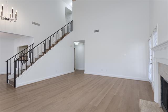 Beautifully updated two-level condo featuring two spacious primary bedrooms, one up, one down, each with its own ensuite bath, plus a versatile bonus room perfect for a home office, gym, or guest space. Recent upgrades include a gorgeous new staircase railing, stylish kitchen backsplash, newly renovated shower, fresh paint, and beautiful new flooring throughout, all of which create a modern and move-in-ready feel. Washer, dryer, and refrigerator all included. Williamsburg Condominiums offers two sparkling pools, a Clubhouse, and a workout facility. Churchill Park is close by with tennis and pickleball courts. White Rock Trail, a popular walking and biking trail, is also nearby. Enjoy this prime location within a gated community south of LBJ, offering both privacy and convenience.