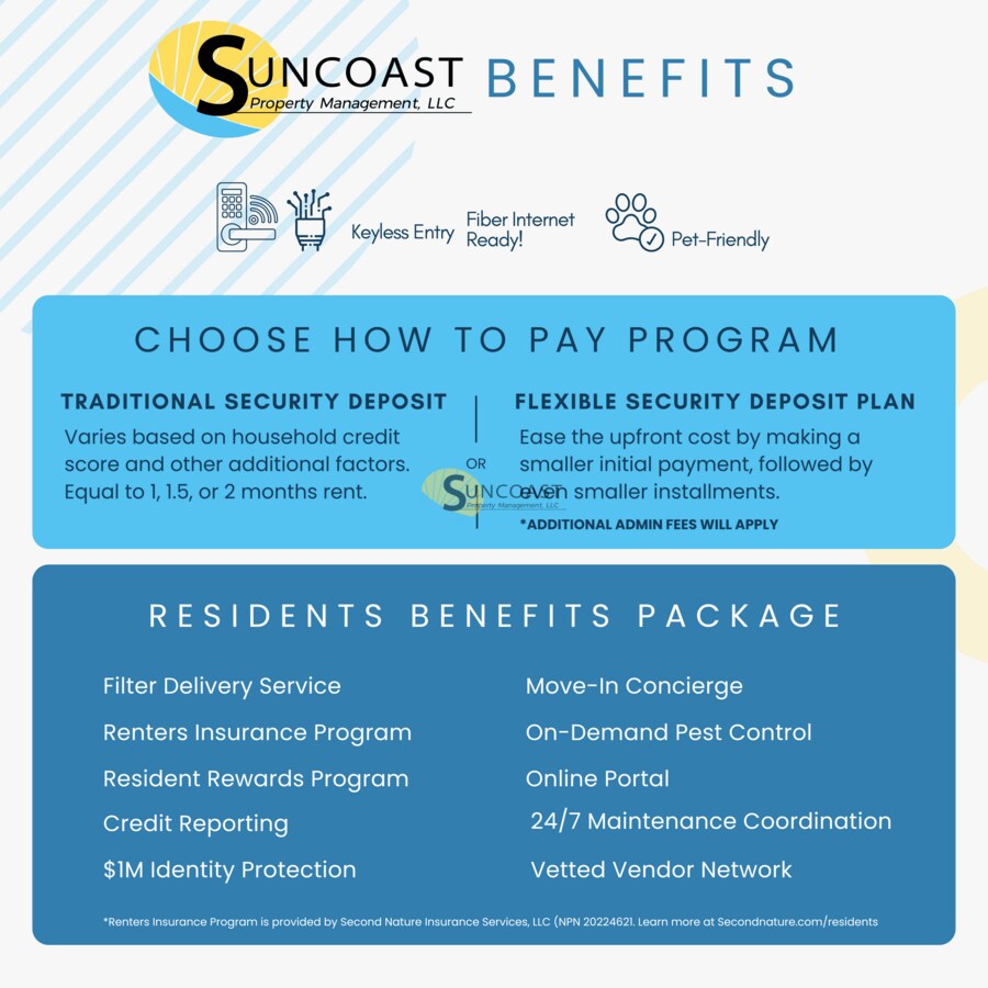 This Modern Home Offers The Perfect Blend Of Comfort, Style, And Convenience. This is True Local Paradise! Just Right Off Of Willmington Blvd and S Mcall Rd, Reach El Jobean Bridge in Seconds. Surrounded by the Beautiful Community of Rotonda, You'll have access to the Rotonda's Community Center and Gulf Courses. Hit The Gulf Side Through Nort Port or I75! Easy access to SR 776 and Gasparilla Road. Step Inside To A Bright, Open-Concept Layout With Luxury Vinyl Flooring Throughout. No Carpet Anywhere! The Sleek Kitchen Features Espresso Cabinetry, Granite Counters, Stainless Steel Appliances, And Plenty Of Counter Space for Easy Storage. The Center Island Brings it All Together Whether for Prep Or Take Out Nights! The Spacious Primary Suite Includes A Private Bath And A Walk-In Closet With Built-In Shelving, While The Second Bedroom Is Ideal For A Cozy Guest Suite or Create Your Own Work from Home Space! Enjoy Your Morning Coffee Or Unwind In The Evening On Your Private Back Patio. The Sun Shines Right Through this Unit So You'll Barely Have to Turn Switches On! Features: - Full Of Natural Light from Patio and Windows - Ceiling Fans In Every Room - Private Back Patio View - Energy-Efficient Design - Attached Garage Location: - 0.2 Miles to Myakka River Elementary - 1 Mile to Publix and Home depot - 8 Miles to HCA Englewood Hospital - 8 Miles Myakka State Forest Trails - Scenic Drives to Boca Grande, Englewood Beach, and Charlotte Harbor * Pet Friendly w/ Non - Refundable Fee and Breed Approval * WE DON'T CHARGE MONTHLY PET RENT! APPLY FOR YOUR COASTAL DREAM NOW! Suncoast's Choose How to Pay Program = More Flexibility. High upfront costs shouldn't hold you back from finding the right home. That's why we offer two simple options: 1. Pay the traditional full security deposit at move-in, or 2. Choose our Flexible Security Deposit Plan, which lets you spread out your payments while still keeping the same coverage. This program helps ease move-in costs without sacrificing peace of mind. Photos are for illustration purposes only and some details may differ! All SunCoast Property Management residents are enrolled in the Resident Benefits Package (RBP) for $75.00/month which includes liability insurance, credit building to help boost the residents credit score with timely rent payments, up to $1M Identity Theft Protection, HVAC air filter delivery (for applicable properties), move-in concierge service making utility connection and home service setup a breeze during your move-in, on-demand pest control, and much more! The RBP is an additional cost and is not included in the advertised monthly rental rate. More details upon application. BEWARE of potential fraud. If you suspect one of our properties being listed fraudulently, please email: Suncoast Property Management does NOT ask any of our potential residents to wire funds. Our main office is located in Jacksonville; Florida and you can visit our website to verify any rental listing. Lease Administrative Fee. Upon execution of this Lease, Tenant will pay Landlord a nonrefundable Lease Administrative Fee of $200.00 Cathedral Ceilings Disposal Garage Pay Online Pets Allowed Washer/Dryer Connections