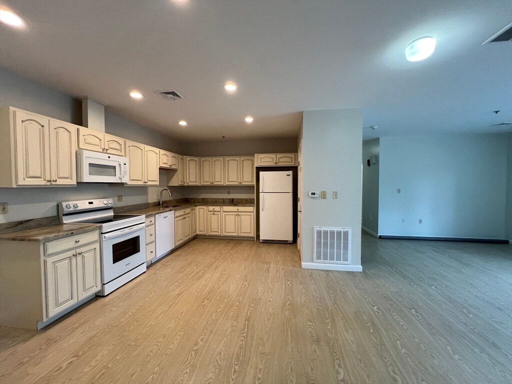Bright and airy across second floor apartment from the Harvey Wheeler Center at the entrance of vibrant West Concord Village,sited less than a quarter- mile to the Fitchburg Line Commuter Rail MBTA Station and some of the area's best restaurants and shops. Large (approximately 15' x 14') bedrooms,featuring double- wide closets and over six-foot tall windowsset in nearly ten- foot high ceilings. Open concept layout with newer kitchen with glazed panels,soft-close drawers,granite counters applainces. . Ties-ins for in-unit side by side laundry. 1 assigned parking space with potential for more. The heat source for a hydro-air furnace is included in the rent as well as the hot/cold water and snow removal. The central air- conditioning is a welcomed feature on these hot summer days. Along with all the extra-wide doors,there is a spacious ADA compliant bathroom (five- foot plus turning radius) and curbless shower with flor drain to accomodate various abilities. MLS# 73401374