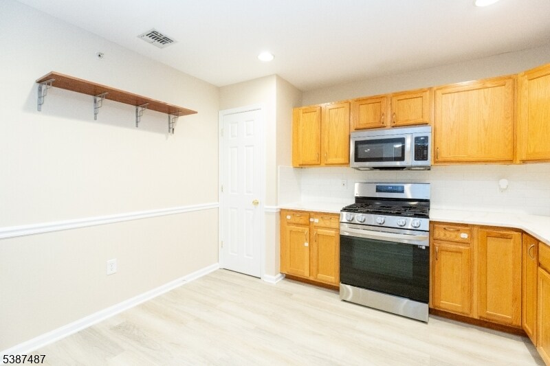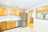 Don't miss out on this rare expansive 2BR/2BA condo in the desirable Birch Glen Community. Over 1500sqft plus a unique 2-story foyer with coat closet. Hardwood floors and recessed lighting throughout this unit. Huge living room that overlooks the foyer, Large formal dining room, and updated eat-in kitchen with new wood-look vinyl flooring, subway tile backsplash, quartz countertops, stainless steel appliances and a nice sized pantry. Enormous master suite down the hall with walk-in closet and renovated private en-suite bathroom, including modern style double vanity with 2 sinks, quartz countertops and gold hardware, tub/shower fully tiled with marble up to the ceiling and a big linen closet. Generous sized second bedroom with large closet. Both bedrooms have direct access to the private covered balcony. Main bathroom also updated, with new flooring, modern style single vanity, mirror and lights with all gold hardware and fixtures. In-unit laundry with full size washer and dryer. Newer 2year old Lenox HVAC system and hotwater heater. All appliances including kitchen and laundry are new! Community offers great amenities including pool, fitness center, playground and tennis courts. Water and sewer included! Tenant responsible for gas, electric and cable.