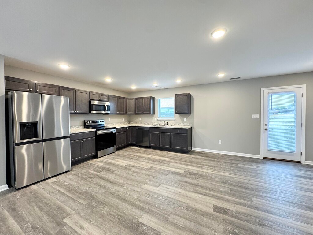 Available NOW for move in! Rent includes mowing,stainless steel appliances,carpet and LVT flooring. This beautiful home is the Calloway Plan with 3 bedrooms/2.5 baths,1700 sq. ft. of living space,2 car attached garage,a back patio and a partial wood privacy fence. Owner will completely enclose wood fencing for additional fee. See it today before it's gone! MLS# 26002103