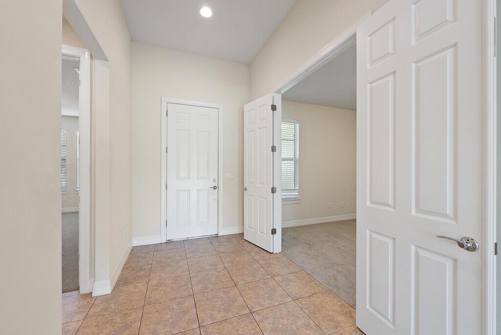 Annual, unfurnished, available now after HOA approval - Shores Pointe, Jupiter. Beautifully maintained 3 Bedroom plus den/flex room, 3 Bathroom, 3 Car Garage home located in the highly desirable community of Shores Pointe in the heart of Jupiter. Soaring ceilings, an open layout, new carpets, 2016 construction. The versatile den/flex room is ideal for a home office, playroom, or guest space. The kitchen is designed for both function and style, featuring white cabinetry, granite countertops, a large island, a walk-in pantry and brand new stainless steel appliances including a gas range. Peace of mind and easy living with full impact windows and doors, CBS construction and metal roof. Includes landscaping, pest control, association fees, common area playground. Zoned for A rated schools!