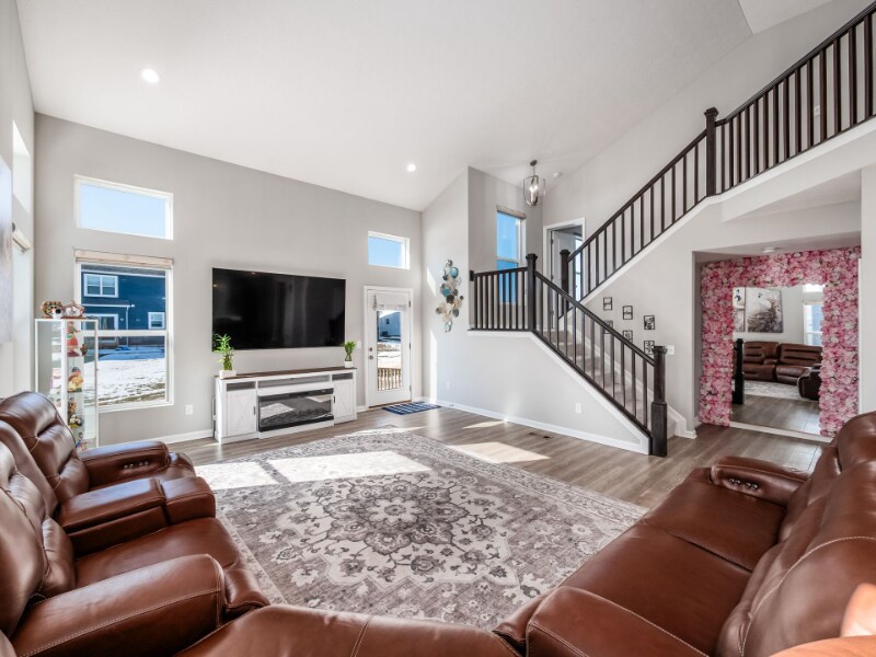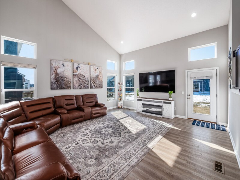 Property Id: 2389740 This beautifully designed 4-bedroom, 2.5-bath 5-level split home offers exceptional space, functionality, and upscale finishes throughout, complete with a 2-car garage and additional storage. A welcoming front entry opens to a versatile flex room or private home office--perfect for today's work-from-home lifestyle. The gourmet kitchen serves as the heart of the home, featuring stainless steel appliances, quartz countertops, a stylish ceramic tile backsplash, and a large center island ideal for cooking, gathering, and entertaining. The open-concept layout flows effortlessly into the stunning two-story great room, highlighted by a dramatic wall of windows that fills the space with natural light and showcases the home's impressive multi-level design. The second level features a spacious owner's suite designed for relaxation, complete with a soaking tub, walk-in shower, and generous walk-in closet. The top level offers three additional well-sized bedrooms, a full hall bath, and a conveniently located laundry room. Just steps below the main level, the finished lower level provides flexible living space perfect for a family room, media lounge, play area, or fitness room. The full unfinished basement offers abundant storage and endless future finishing possibilities. This thoughtfully maintained home is enhanced with premium upgrades and modern conveniences, including multiple private entry points (front, garage, and side entrance with direct garage access), a high-end washer and dryer, an ultra-quiet 39-decibel dishwasher, sleek modern refrigerator, installed water purification and filtration system, and motorized power blinds for effortless light control and privacy. Combining comfort, sophistication, and versatility across five spacious levels, this exceptional home is designed to elevate everyday living.