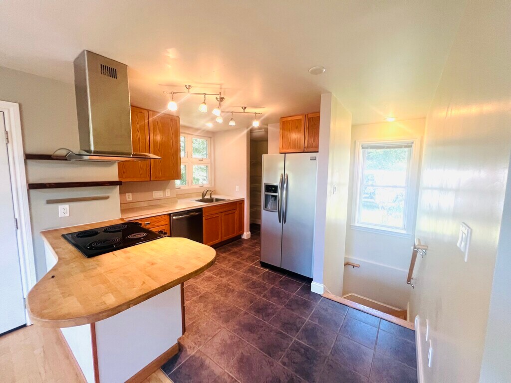 AVAILABLE NOW DOWNTOWN BOONE WITH LONG RANGE VIEWS OF GRANDFATHER MOUNTAIN! WALK TO ASU Three bedrooms, two full bathrooms, large kitchen, tons of natural light. Community gardens, community chickens, common space, fire pit and long range layered views. This home is passive solar with large windows and high ceilings. Covered porches and private backyard. Gorgeous cement and hardwood floors. Freshly painted. Efficient central air conditioning and heat. Enjoy common space with Grandfather Mountain view and fire pit within a short walk to downtown and ASU! No co-signers. Not a student rental. Background check, credit check and income verification required.