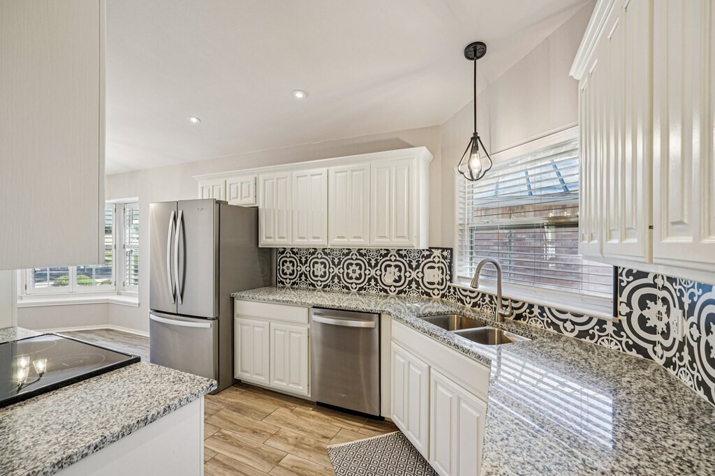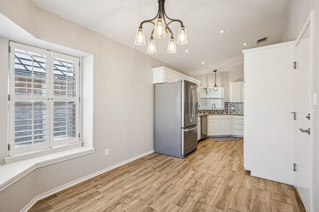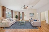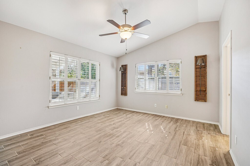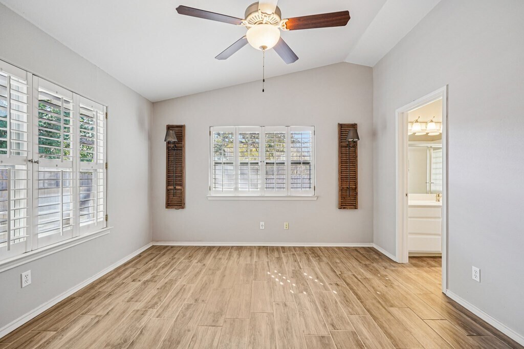 FOR LEASE: Discover effortless elegance in the heart of Riverhill Country Club. This beautifully updated garden home combines style, comfort, and convenience—perfect for full-time living or a lock-and-leave lifestyle just steps from club amenities. Inside, vaulted ceilings, plantation shutters, and abundant natural light create a bright, open feel. The kitchen is a standout with crisp white cabinetry, granite countertops, stainless appliances, and a striking designer backsplash. Neutral paint and wood-look tile floors flow throughout, enhanced by premium lighting for a polished finish. The primary suite offers a spacious retreat with a walk-in closet and a modern en suite bath. Two additional bedrooms—one ideal as a home office—provide versatility for guests or work-from-home needs. Step outside to a covered patio and a private, low-maintenance backyard accented with flagstone rockwork. Xeriscaped front landscaping completes the lock-and-go lifestyle, giving you more time to enjoy golf, dining, and social activities at Riverhill Country Club. Stylish, practical, and move-in ready—this home makes elevated Riverhill living beautifully simple.