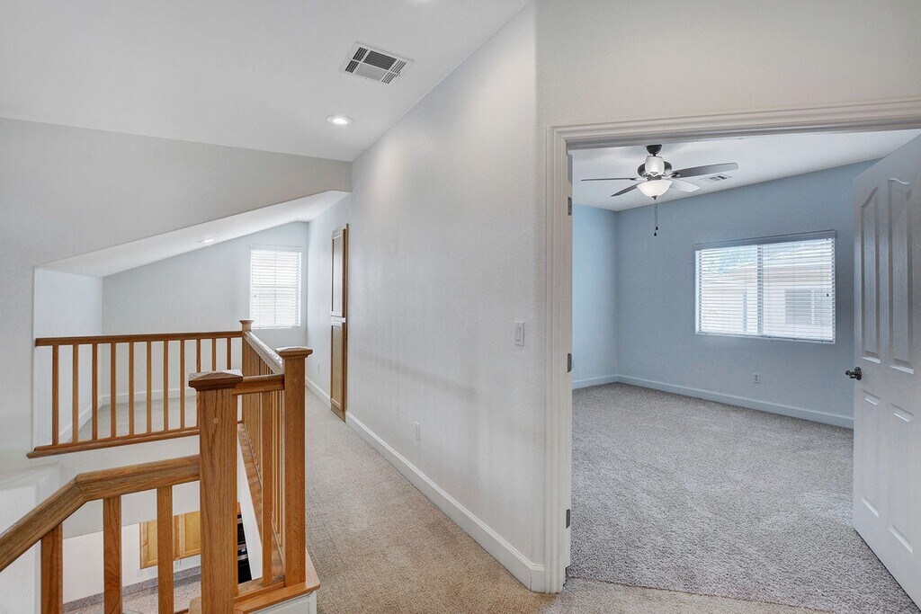 Spacious 3-bedroom home featuring soaring ceilings and a bright, inviting living area! Enjoy a large unique loft upstairs, a huge backyard perfect for relaxation, and all appliances included! Located in a desirable gated community with a sparkling pool, just minutes from the Las Vegas Strip and easy freeway access. Please schedule a showing with your Realtor!