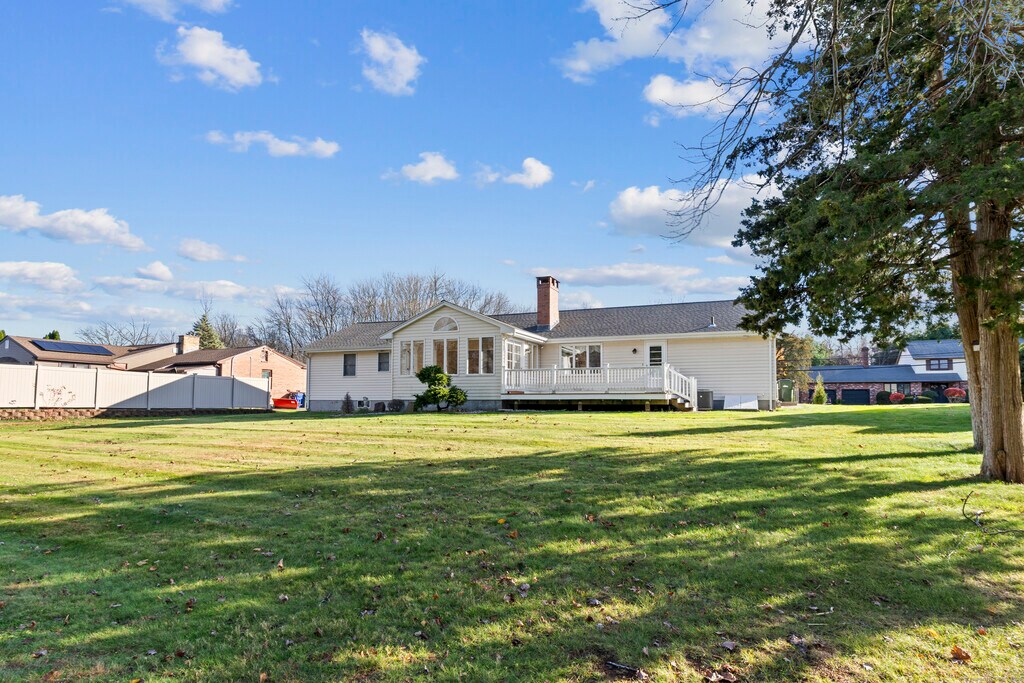 Call for Availability - CLEAN, PRISTINE Wethersfield single-family ranch home with 3 oversized bedrooms, 3 bathrooms, a large, level yard and 2-car attached garage. Expansive home offering 2,200+ sq ft of single-level living plus an additional 1,900 sq ft of clean, dry basement space. Beautifully updated kitchen with newer appliances, gas cooking and heating, and new central air. Main-level laundry. Plenty of natural light and an open floor plan with formal dining area, a large living room, flex areas, a spacious family room, and a bright sunroom with a skylight and French doors that open to a large deck overlooking the flat, partially fenced backyard. The primary bedroom includes a large walk-in closet and private full bath. There are 2 additional large bedrooms and a second full bathroom. The remodeled kitchen features white cabinetry, granite countertops, a large island with seating, stainless-steel appliances, a large pantry, and additional rear access to deck and backyard space. Just off the kitchen is a third bathroom, dedicated laundry area, access to the two-car attached garage, and basement entry. Major updates include a new roof, new 200-amp electrical service, and new gas water heater. Most pets OK. MLS# 24138698
