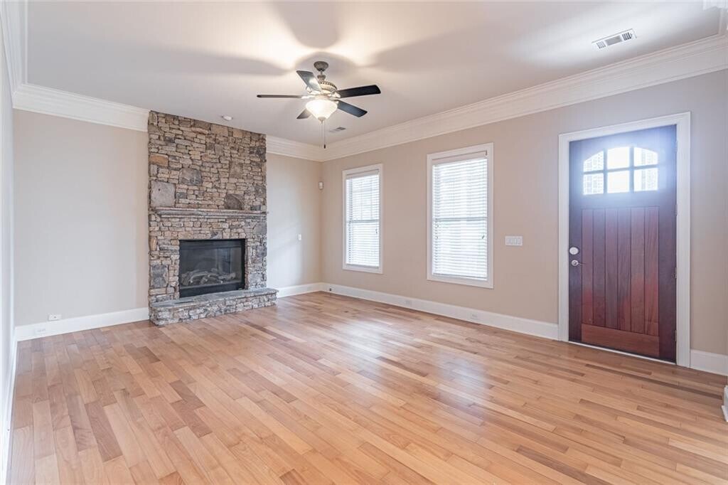Discover this 4-bedroom,2.5-bath residence ideally located in the heart of Atlanta,just a short walk to Atlantic Station,Georgia Tech,West Midtown and Midtown. Enjoy the inviting covered front porch,perfect for relaxing year-round. Inside,the chef’s kitchen impresses with gas cooking,stainless steel appliances,a center island,and granite countertops accented by a ceramic tile backsplash. Elegant hardwood floors,throughout the entire home,trey ceilings,and ceiling fans flow throughout,while natural and recessed lighting fill every room with warmth. The spacious primary suite features a custom walk-in closet system,double vanity,and separate tub and shower for a true retreat experience. There are 3 additional bedrooms and bath for family members or guest. The open concept living room centers around a beautiful,stacked stone fireplace,creating the perfect gathering space for friends and family. Additional highlights include landscaping included and a two-car garage. The apartment above the garage is leased and not included with this rental.
