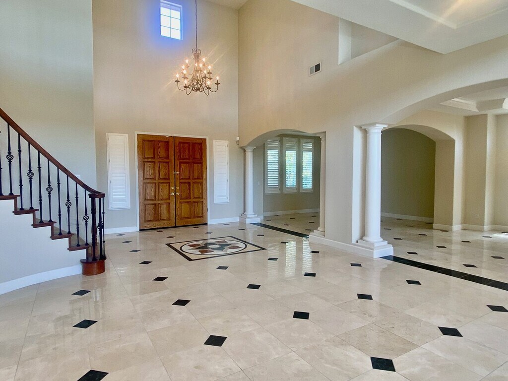 Located in the gated community of Serrano in El Dorado Hills, this newly painted, 4-bedroom, 4-bathroom residence boasts an impressive 4265 square feet of living space. The entryway is striking with a dramatic spiral staircase and a bridge walkway that leads to the expansive master suite. The formal living and dining rooms are adorned with elegant Tuscan columns and crown molding, adding a touch of sophistication. The vaulted ceilings at the entry and family room, complete with a gas fireplace, create an inviting and cozy ambiance. The kitchen showcases an open concept design, featuring stunning granite slab countertops and cherry cabinets. Modern amenities include a new 5-burner gas cooktop, built-in double oven, and refrigerator. The first floor is adorned with upgraded large polished marble tile flooring, adding to the luxurious feel. The master suite is a true retreat, offering a spacious area with a dual gas fireplace, two walk-in closets, and access to a balcony that provides sweeping views of El Dorado Hills. Upstairs, you'll find a generously sized loft area and two additional bedrooms, each with ensuite baths. The second floor is adorned with solid wood floors for a timeless and elegant touch. Convenience is key, as the home features a downstairs bedroom with a full bath, making it an ideal space for guests or a home office. The laundry room is spacious and well-equipped, with cabinets, a sink, and plenty of storage. Additionally, there's a walk-in pantry closet and a separate coat closet to keep everything organized. 3 car oversized garage with a pass through rear gate to the backyard for boat or jet ski storage. An enclosed room with windows and ceiling light fan can be used an office or additional storage. The expansive backyard is a standout feature, featuring a patio trellis and lush landscaping. Fruit enthusiasts will appreciate the variety of fruit trees, including apples, figs, persimmons, and orange trees. This outdoor oasis offers ample space for relaxation and entertainment. Overall, this home combines functional living spaces with luxurious features, making it a truly inviting and comfortable residence. Rent: $4500. Security deposit: $4500. Tenant pays for water, sewer, garbage directly to El Dorado Irrrigation District. Application Fee:$50 per adult. When applying, please provide last month's bank statements, last month's paycheck stubs, landlord reference and copy of driver's license. NO SMOKING, NO PETS, NO DRUGS, NO VAPING. RENTAL QUALIFICATIONS 1. All persons 18 yrs and older will be required to submit an application and will be subject to credit and reference screening. 2. Small pets may be allowed with additional deposit, exclusive of service animals. 3. Full deposit is required within 24 hours of acceptance, paid by cashiers check or money order only. 4. Applications are accepted on a First Come, First Qualify, First Serve basis. 5. Omissions or falsified information will result in denial. Income, Credit & Rental History Requirements 1. Deposit amount is equal to one months rent. 2. Combined income of household must be at least 3 times rent. Must submit 2 months of recent pay stubs, bank statements, and tax return, if self employed 3. Income must be legal, provable and paid directly to applicant. 4. Credit requirements include a minimum of 600 FICO credit score. No recent (in the past 3 years) late payments, bounced checks, collections nor public records 5. Conditional acceptance will require higher deposit. Rental History 1. Every applicant must have positive rental references from prior landlords. 2. Applicants may not be considered if they have a record of eviction or conviction of the sale or manufacture of controlled substance. For more information, please call , , .