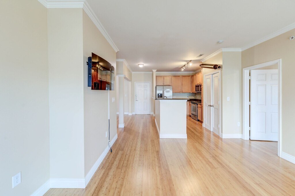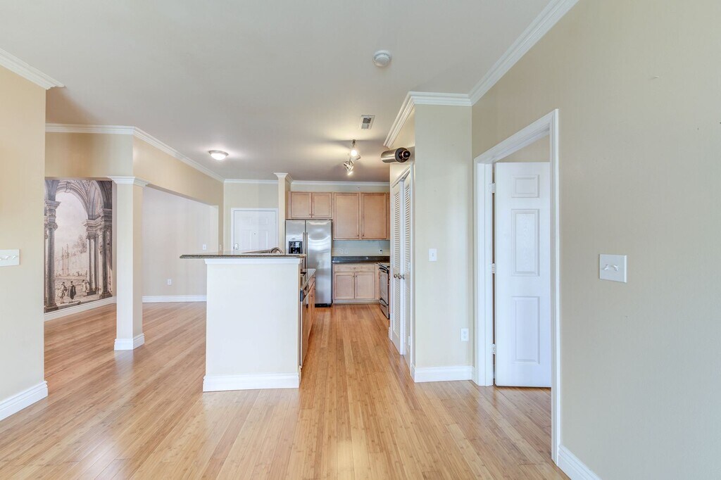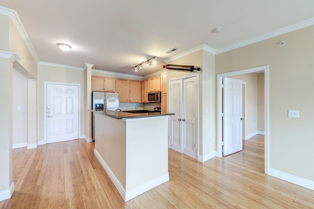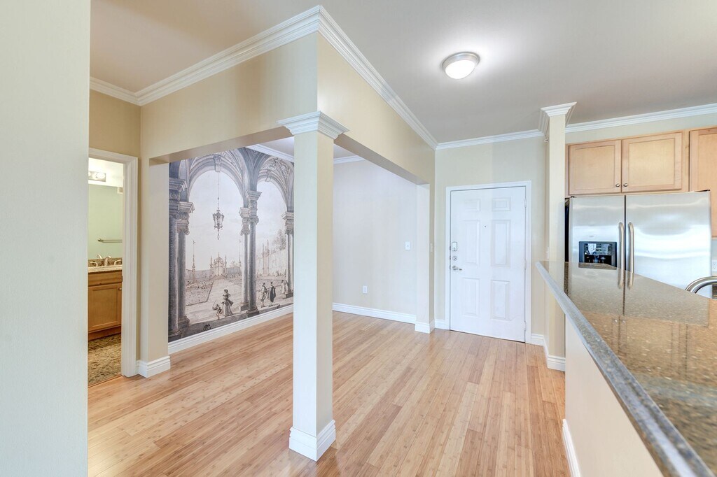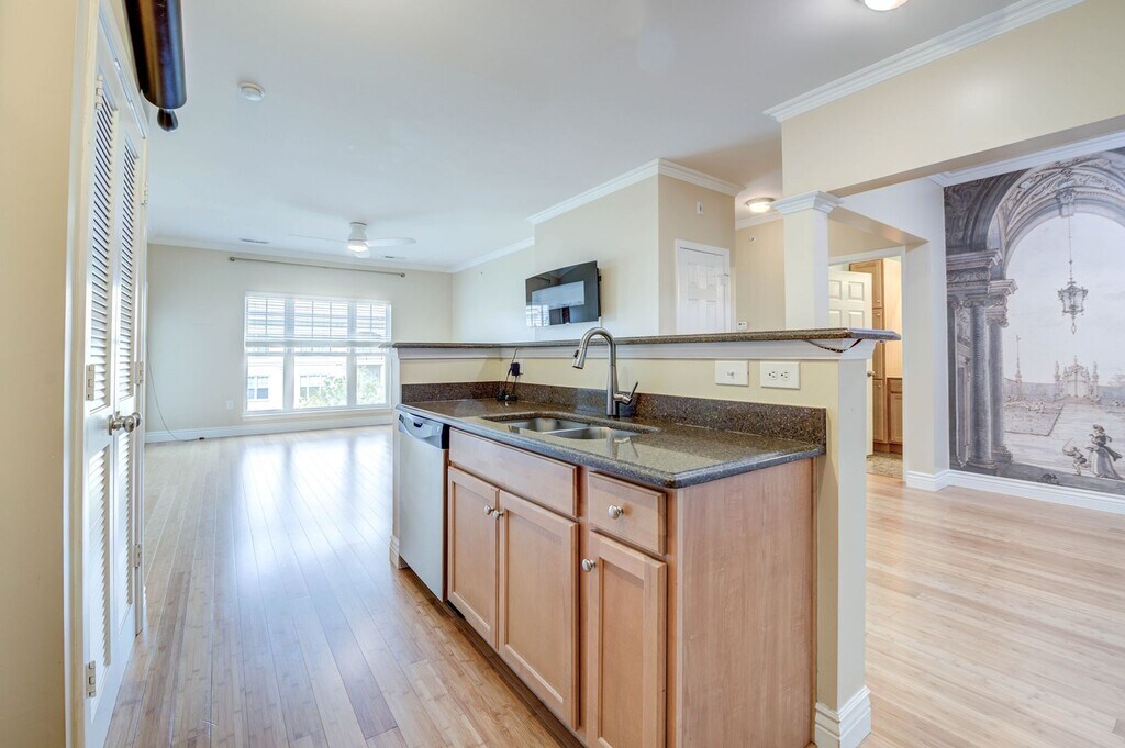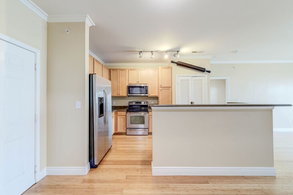 Enjoy low-maintenance living in this stylish 2-bedroom, 2-bath condo located in the desirable Brentwood School District. Built in 2007 and offering 1,050 sq. ft. of living space, this home features hardwood floors, granite countertops, stainless steel appliances, and a spacious walk-in closet. The open layout includes a bright living room, dining area, and a private balcony perfect for relaxing. Residents will love the resort-style amenities, including a CLUBHOUSE, FITNESS CENTER, POOL, HOT TUB AND SECURE PARKING GARAGE WITH 2 ASSIGNED SPACES. With easy elevator access, internet and cable included, plus nearby shopping and dining, this condo blends comfort and convenience.